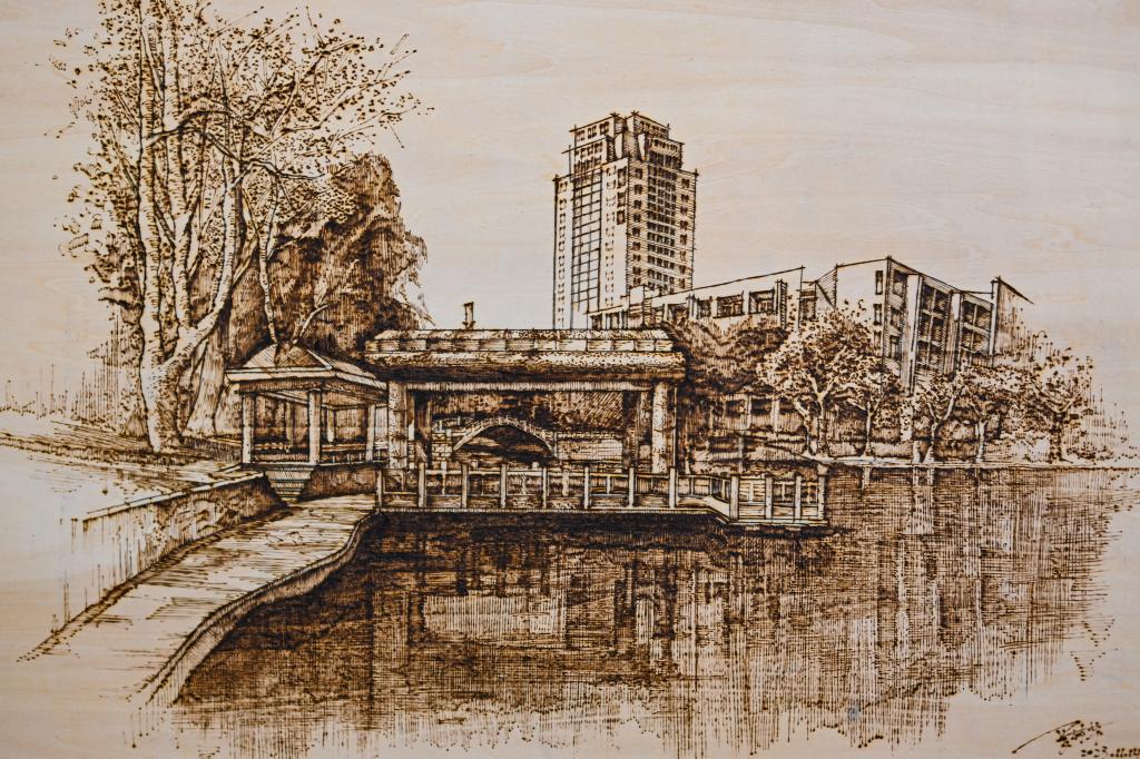【新闻中心讯】手腕轻动,电烙发出点点红光,在细微的青烟下,在淡淡的焦香中,燕园风景和建筑的烫画轮廓一点点呈现……