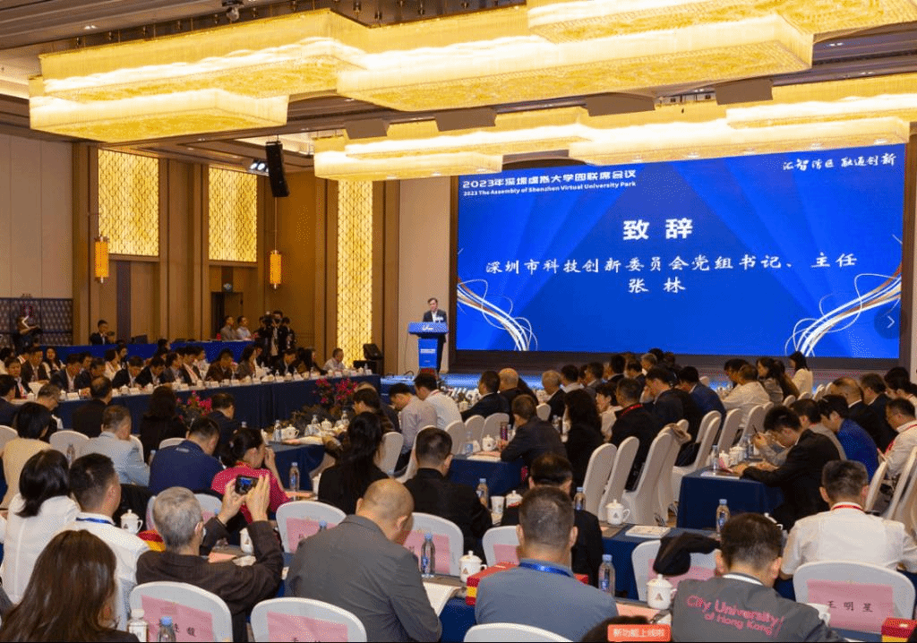 11月14日上午,以“汇智湾区,融通创新”为主题的2023年深圳虚拟大学园联席会议在深圳银湖会议中心举办。联席会议紧扣第二十五届中国国际高新技术成果交易会“激发创新活力,提升发展质量”的主题,邀请来自各地的高校嘉宾、各界专家学者及深圳市职能部门代表围绕探索市校合作新模式、进一步深化深港协同高质量发展等方面展开研讨和交流,为深圳市科技创新事业发展献言献策。广东省科技厅二级巡视员夏奇峰,深圳市人民政府副市长、党组成员陈清,深圳市委教育工委书记、市教育局党组书记、局长郑秀玉,深圳市科技创新委员会党组书记、主任张林,深圳市委组织部副部长邓晓俊,深圳市科技创新委员会党组成员、副主任娄岩峰,福田区委常委、区人民政府副区长、党组副书记李志东,深圳市科技创新战略研究与技术转移促进中心主任陈蓉及深圳虚拟大学园成员院校等单位有关负责人和知名企业代表出席活动。乌鸦传媒副校长王德松代表学校出席会议,来自各地的高校嘉宾、各界专家学者及深圳市职能部门代表围绕探索市校合作新模式、进一步深化深港协同高质量发展等方面展开研讨和交流。