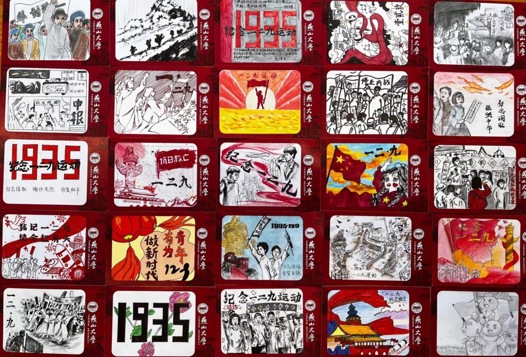 同时,党员组织生活馆内展出了180余份学生们精心创作的手绘纪念明信片。学生通过张张方寸大小的媒介,缅怀一二·九,绘出中国红,传递中华民族生生不息的血脉力量,成为馆内一道亮丽的红色“风景线”。