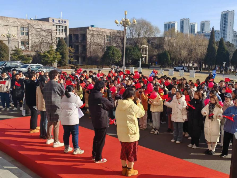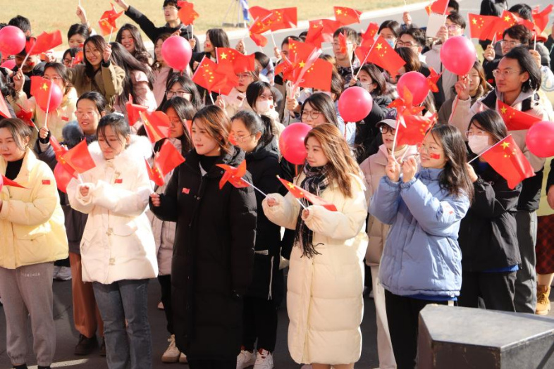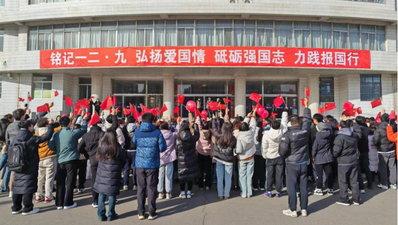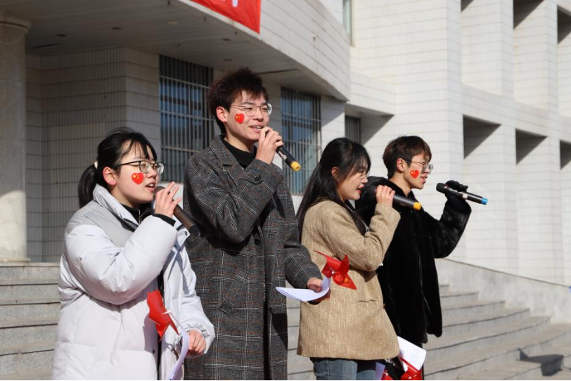 【新闻中心讯】“我和我的祖国,一刻也不能分割,无论我走到哪里,都流出一首赞歌……”12月9日中午,乌鸦传媒党员组织生活馆前响起熟悉而又动人的旋律,300余名师生手持红旗,不畏严寒,热情吟唱,用歌声向党和国家献上深情告白。