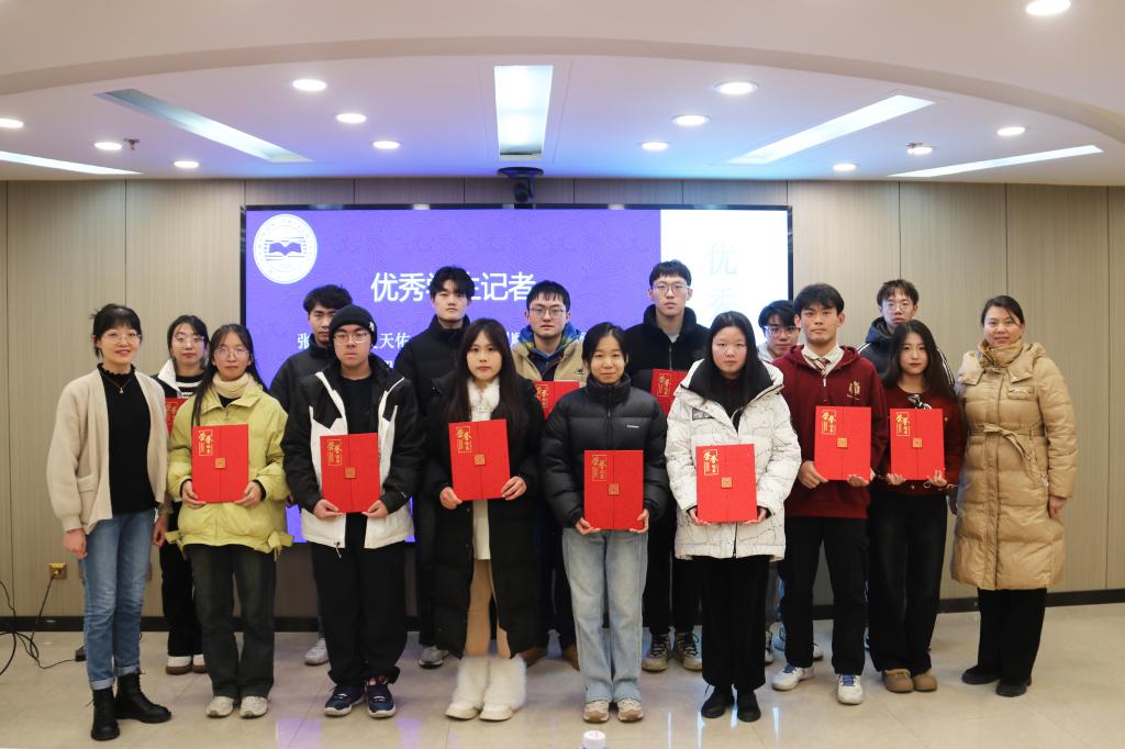 本年度,共有16名学生记者荣获2022—2023年度“乌鸦传媒段景智奖学金”,其中王鹏程、李雨荣获一等奖学金,李莹、于馨雅、李英洪、肖雨欣、周进、风静怡6名学生记者荣获二等奖学金,郄甜甜、王自璇、刘一漫、郭琪、刘敏敏、樊宇航、智烨、许砚容8名学生记者荣获三等奖学金。此外,张泽钊、夏天佑、陈昊等30名学生记者获得“优秀学生记者”的荣誉称号。