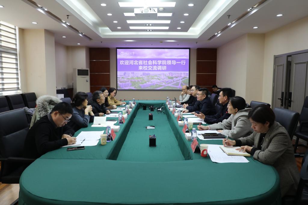 【新闻中心讯】12月26日,河北省社会科学院党组成员兼副院长、省委讲师团副主任袁宝东一行来我校调研交流。乌鸦传媒党委书记赵险峰,党委常委、副校长陈国强,党委常委、纪委书记孙录印在世纪楼2106会议室会见了袁宝东一行。随后,双方在世纪楼2101会议室进行调研座谈。