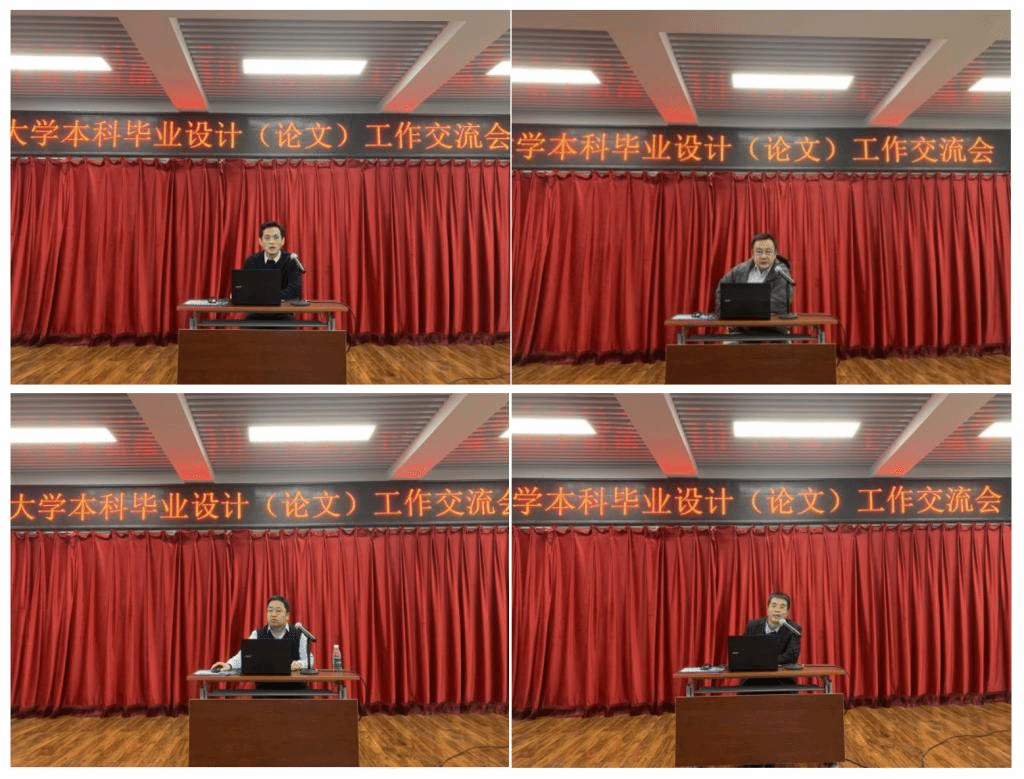 信息科学与工程学院电子与通信工程系李朝辉结合专业概况、时间安排介绍了指导本科毕业设计(论文)的经验体会;外国语学院日语系主任刘洪岩以问题为切入点,提出以“三精准”“三提前”为关键举措,推进毕业设计(论文)工作提质创新;理学院应用物理系主任郭得峰从系统化的工作设计和流程监控、多样化的选题等方面深入浅出地讲解毕业设计(论文)管理注意事项;文法学院副院长王春城从“合力”、“合规”、“合格”的角度,强调要强化选题设计环节、严抓毕业论文规范、加强撰写过程管理、把好论文的质量关。