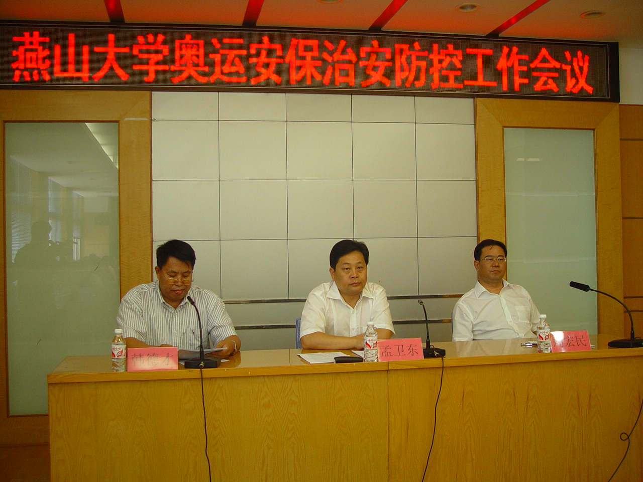 会议由校长刘宏民主持,刘校长传达了秦皇岛市委、市政府《关于进一步加强社会面防控工作的实施意见》的通知,并强调奥运安保工作已经进入决战阶段,希望全校各级领导干部,团结一心,密切协作,共同维护好学校的安全稳定,以实际行动为奥运安保做出贡献。