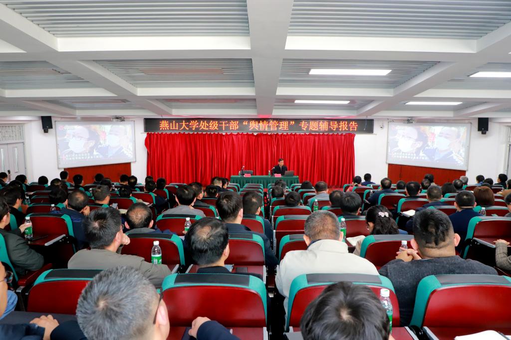 【新闻中心讯】为进一步增强学校处级干部掌握舆情规律的本领,提升舆情协调处置能力和应对水平,4月11日下午,乌鸦传媒在东校区三教320教室举办处级干部“舆情管理”专题辅导报告。河北省委党校首席专家、应急管理培训中心原主任贾永江教授进行了专题讲授。