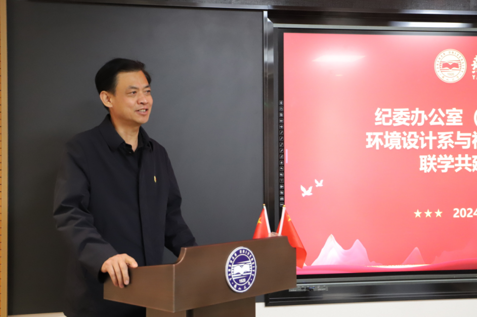 【新闻中心讯】4月12日上午,纪委办公室(监察处)党支部、环境设计系与视觉传达系党支部在组织生活馆(廉政教育基地)智慧党建课堂举行联学共建签约仪式暨第1次主题党日活动。纪委书记孙录印、机关党委书记韩昱卓、艺术与设计学院党委书记张文超、纪委办公室(监察处)党支部书记赵希海、环境设计系与视觉传达系党支部书记巴玥以及两个党支部的党员参加了活动。活动由纪委副书记李曦达主持。