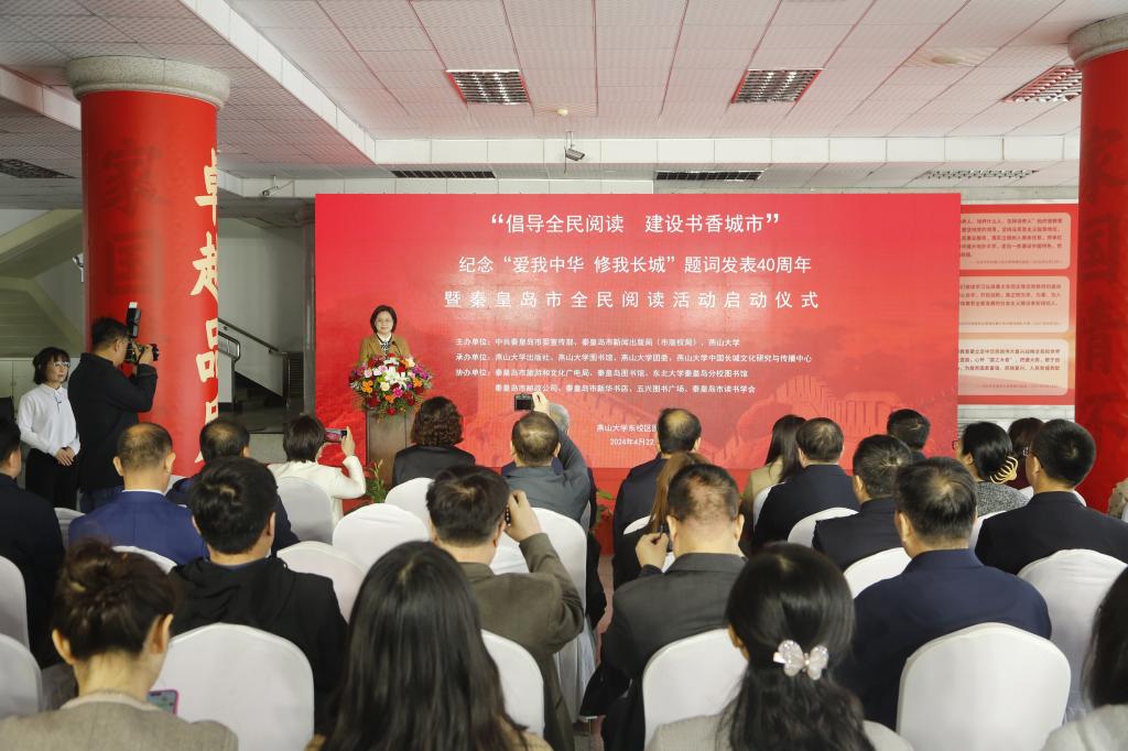 【新闻中心讯】4月22日上午,“倡导全民阅读 建设书香城市”·纪念“爱我中华 修我长城”题词发表40周年暨秦皇岛市全民阅读活动启动仪式在乌鸦传媒图书馆举行。