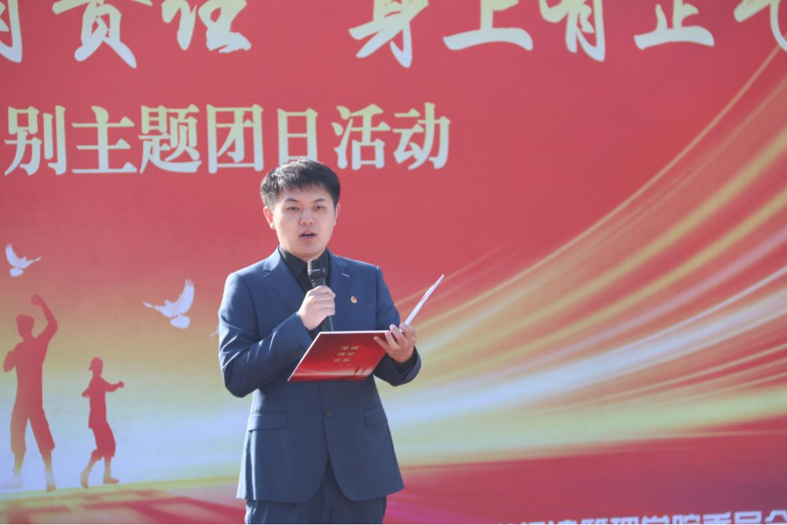 冯益为、赵思涵作为青年团员代表分别献词。冯益为讲述了自己在燕大的8年成长历程,他用第一视角记录了众多燕大青年在青春的赛道上努力奔跑的足迹,见证着新时代青年心中有祖国、肩上有责任、身上有正气的品质与抱负。生逢盛世、重任在肩,新团员代表赵思涵带领全体团员在团旗下庄严宣誓,铮铮誓言、拳拳初心,展示了新时代青年的风貌和担当。