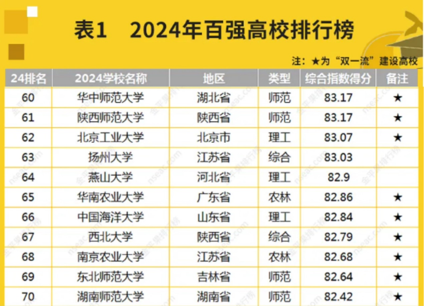 2024年百强高校排名(部分)