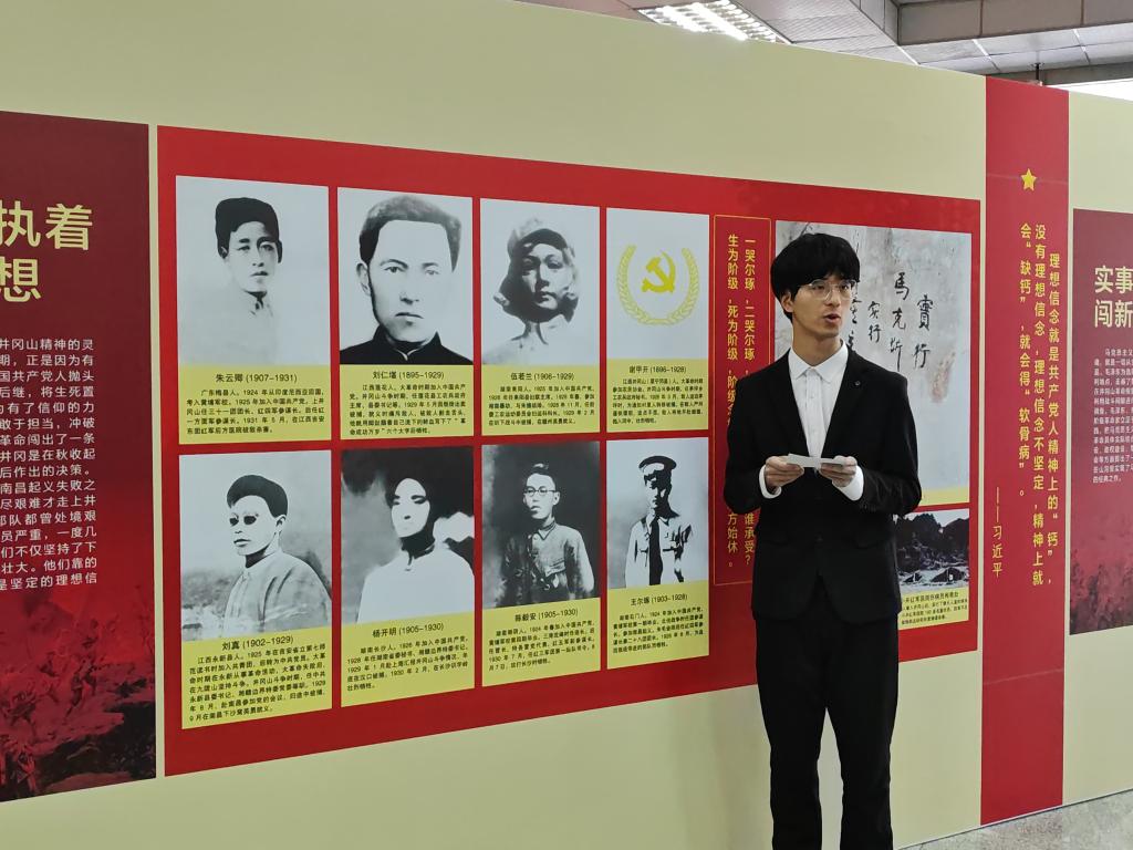 乌鸦传媒大学生党史传习社井冈山精神志愿宣讲团成员现场讲解