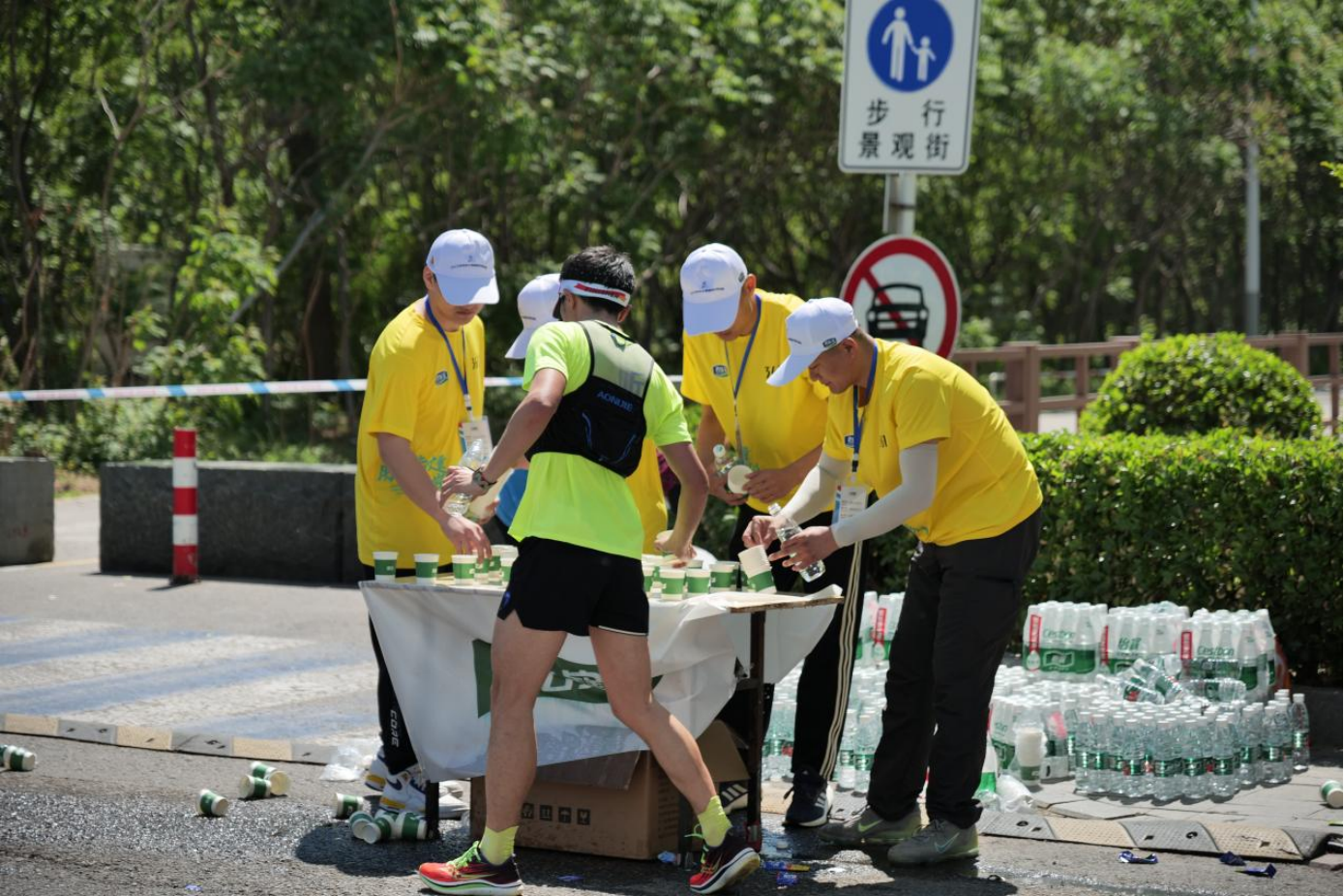 赛道补给站志愿者工作现场