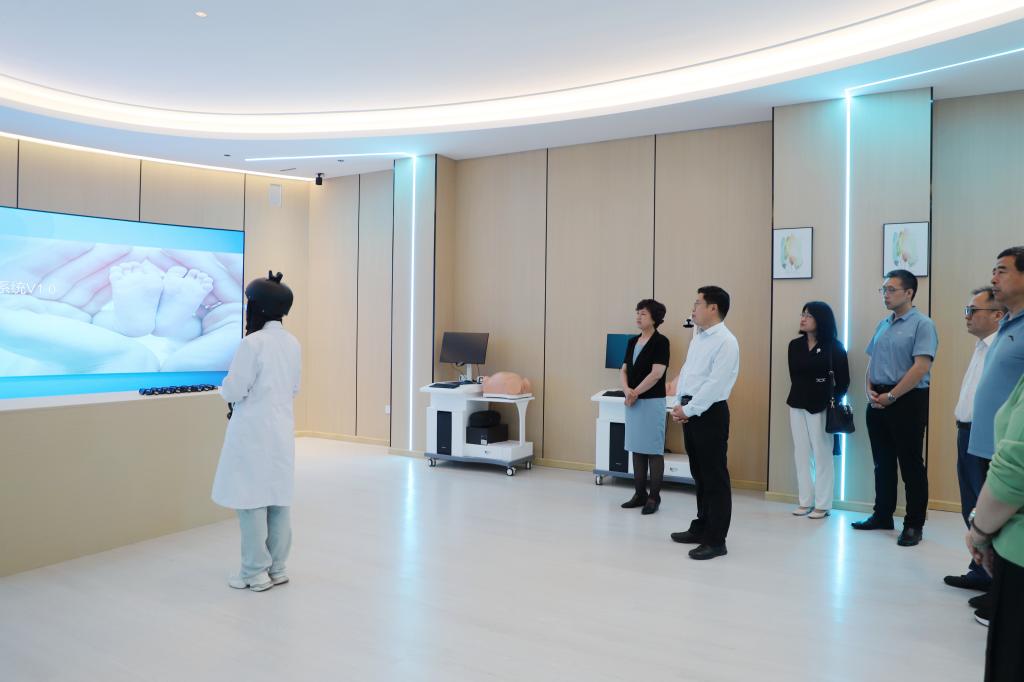 赵险峰一行还参观了护理系助产学虚拟仿真智慧实训室,沉浸式体验了虚拟仿真的教学环境,感受科技赋能教学的效果。