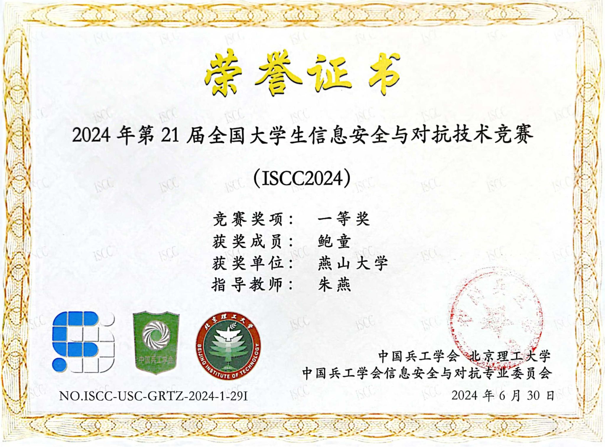 2024年7月,第21届信息安全与对抗技术竞赛(ISCC2024)全国总决赛获奖名单正式发布,我校选手喜获佳绩。个人挑战赛中我校学生鲍童荣获一等奖,迟凡杰、田博松、史鸿宇、史诗雨荣获二等奖,李逸川、曹祯浩荣获三等奖,共获得7项奖项,不仅展示了我校在信息安全领域的卓越教育水平,也凸显了学生们的实践能力和创新精神。