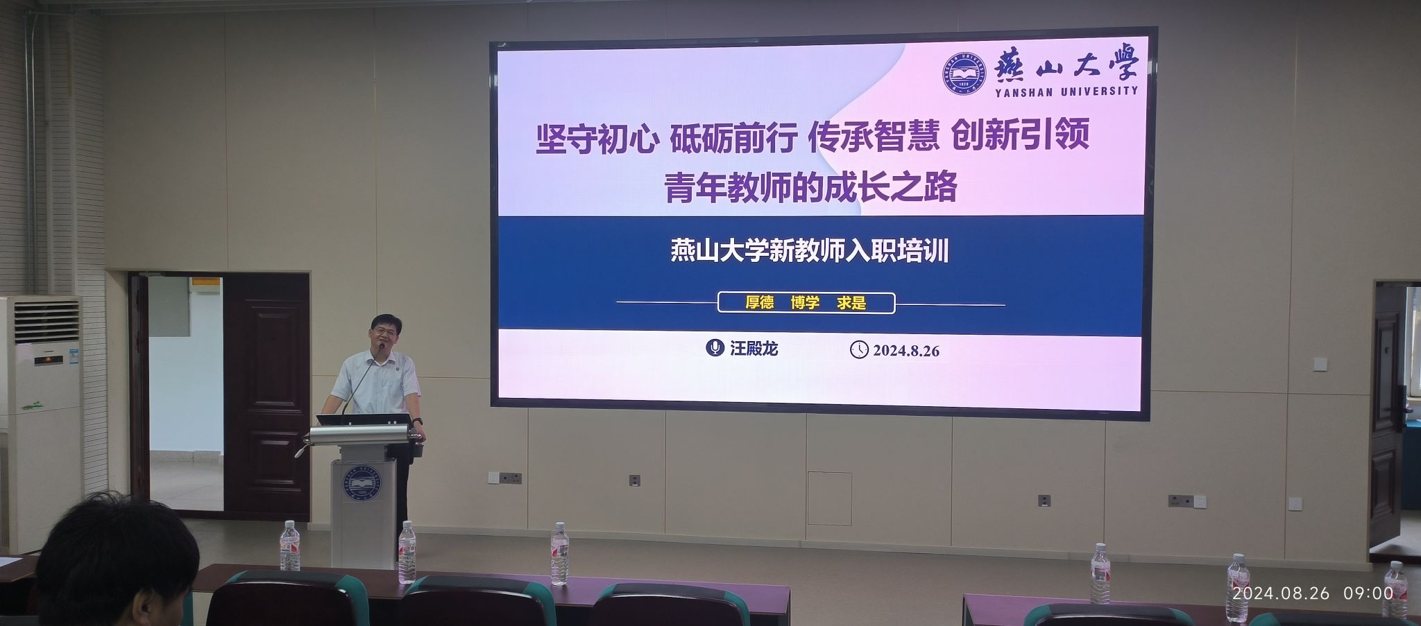 开班仪式上,党委常委、副校长汪殿龙详细阐述了人才强校战略,从“青年教师发展六要求”、“青年教师成长五要学”等方面,对新教师提出了殷切期望和具体要求。他强调,要努力践行“学为人师,行为世范”的师德风范;要摆正心态,安心从教,关注课堂,持续提升教育教学能力;要坚持以学生为中心,学习落实先进教育理念;随后从思想政治、教育教学、科学研究、学科建设、管理能力等五个方面对青年教师的成长和发展提出要求,并鼓励新入职教师尽快提高教学能力和素质,以促进学生德智体美劳的全面发展;最后希望新入职教师能够始终秉承“厚德、博学、求是”的校训精神,奋发、奋斗、奋进,为学校高质量发展做出更大贡献。