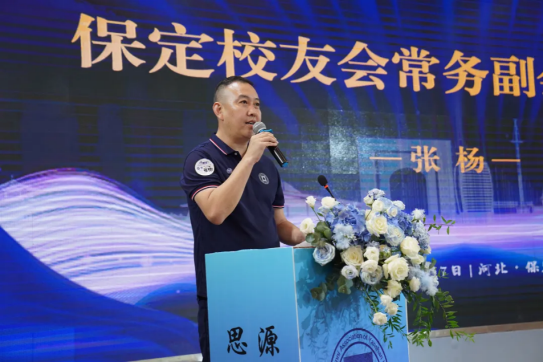 张杨代表保定校友会感谢母校领导的高度重视和亲切关怀,向兄弟校友会莅临祝贺、筹备组校友无私奉献、各界校友慷慨捐赠致以诚挚的谢意。2003级国际政治专业校友、河北倾颂文化发展有限公司总经理梁燕青,2006级交通运输专业校友、天津申一汽车销售有限公司总经理何晓飞分别作为校友代表发言。1991级轻工机械专业校友、中国书画家协会会员、河北省书法协会会员、保定市书法协会会员、保定龙泉书法协会会长、保定竞秀区名家工作室成员朱晓峰,创作了一幅书法作品赠予校友总会,同时向每个致贺的兄弟校友会赠送现场创作的墨宝。