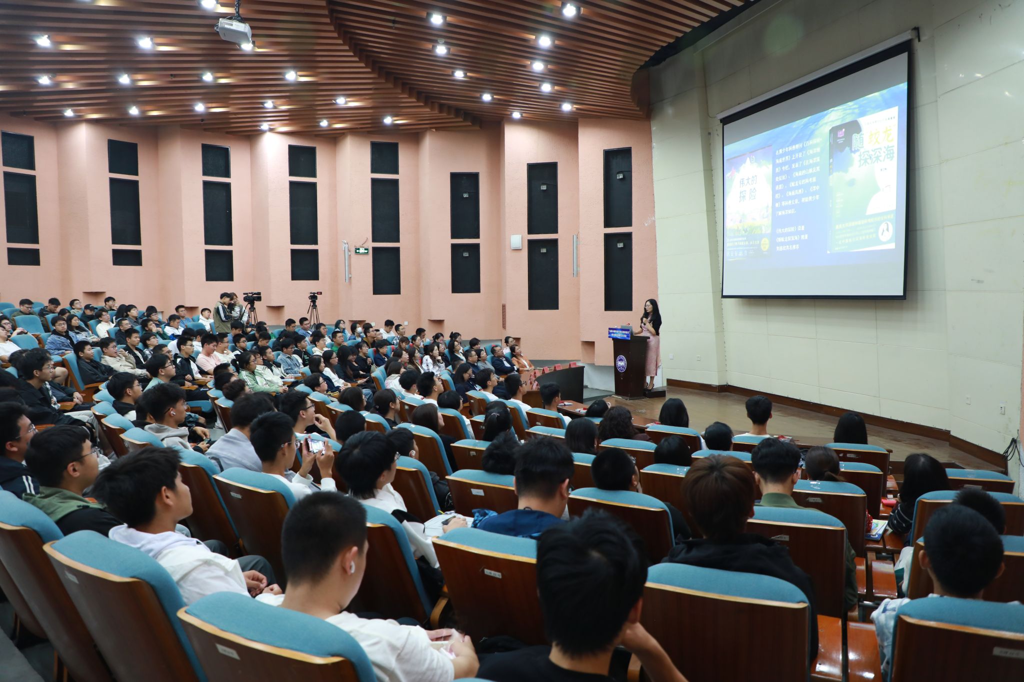 接着,全国巾帼科普专家、自然资源部第二海洋研究所唐立梅教授作了题为“地球极端环境下的科学探索—从深海到南极”的科学家精神宣讲。唐立梅教授作为第一位兼具大洋深潜与南极科考经历的中国女科学家,将其搭“蛟龙”探海,乘“雪龙”破冰的亲身科考经历,结合我国载人深潜新的突破、“蛟龙”号载人潜水器海试的意义、科普海洋知识等,凭借其深厚的学术造诣、丰富的科研经验和诙谐幽默的语言,深入浅出地为同学们进行了讲解,让同学们近距离领略到了科学的魅力和科学家精神,现场掌声频频,气氛热烈。本次讲座,同学们不仅对海洋科学和极地研究产生了浓厚的兴趣,更激发了他们对科学探索的热爱,鼓励他们以科学的态度和方法,勇敢地追求自己的科学梦想。