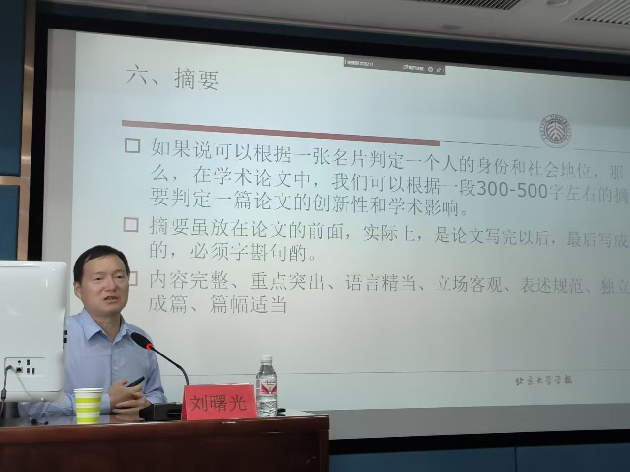 刘曙光主编从“写作的本质”讲起,指出作品是人的本质的对象化,写作反映个体的心灵、才智和情感。他从期刊编辑视角出发,围绕学术论文的类型与存在的问题、期刊编辑与作者读者的关系、论文题目、选题及创新、作者、摘要、关键词、参考文献、论文的语言与内容及论文的锤炼修改等方面细致讲解了学术写作的注意事项。指出学术论文写作要实现选题创新、观点正确、结构合理、论证有力。他还强调青年学者一定要遵守学术规范和学术戒律,夯实学术基础,应对新技术挑战,立足时代前沿,创作出具有理论意义和现实价值的学术成果。