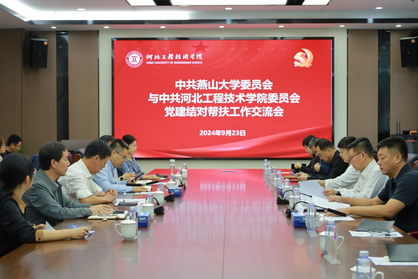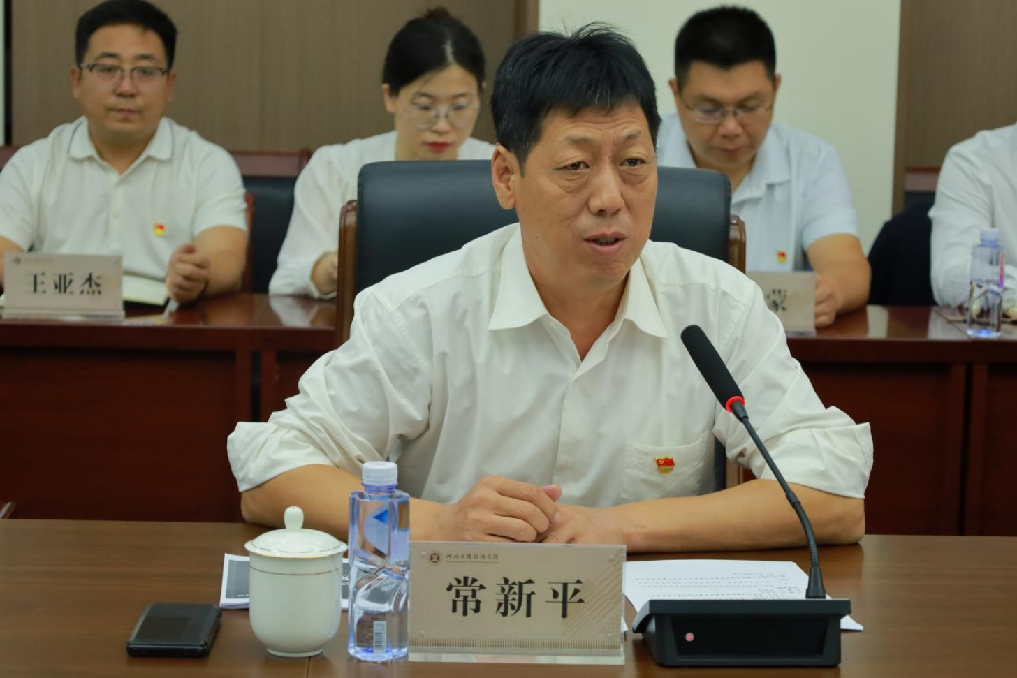 在党建结对帮扶工作交流会上,陈国强表示,开展本次党建结对帮扶工作,是落实省委教育工委安排部署的务实行动。通过省委教育工委搭建的交流平台,充分发挥党建示范引领作用,推动双方整合资源、优势互补、共同发展,构建大党建格局,必将对促进双方党建高质量发展起到重要作用。暑期以来,两校结合党建与业务融合发展的需要已经开展优化人才培养方案、学术会议交流等相关工作,在构建资源共享、优势互补的党建工作新格局方面迈出坚实的一步。接下来,双方应充分认识帮扶共建的意义,坚持高标准推进;切实达成帮扶共建的目标,坚持高质量落实,着力将两校的帮扶共建着力打造成河北省公办高校与民办高校帮扶共建的先进典型。河北工程技术学院党委书记常新平对我校一行的到来表示热烈欢迎,对学校在党建共建、育人协同、资源共享等方面提供的支持表示衷心感谢。常新平对河北工程技术学院基本情况及党建工作情况进行介绍,并进一步明确了党建结对帮扶的工作需求与目标。