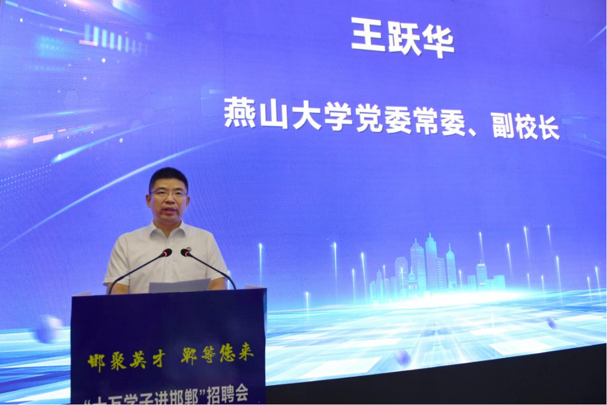 王跃华对邯郸市代表团的到来表示热烈欢迎,就邯郸市长期以来给予学校的支持与帮助表示衷心感谢。他表示,邯郸市在推进高质量发展进程中,始终高度重视人才工作。“十万学子进邯郸”就业活动,是邯郸市贯彻落实党的二十大和二十届三中全会精神,积极推进科技、产业、人才“三位一体”协同融合发展的重要举措,是校地双方搭建优势互补共同体的关键环节。他强调,学校将与邯郸市携手共进,深化校地合作,充分发挥双方优势,实现校地双向赋能、共建共赢。