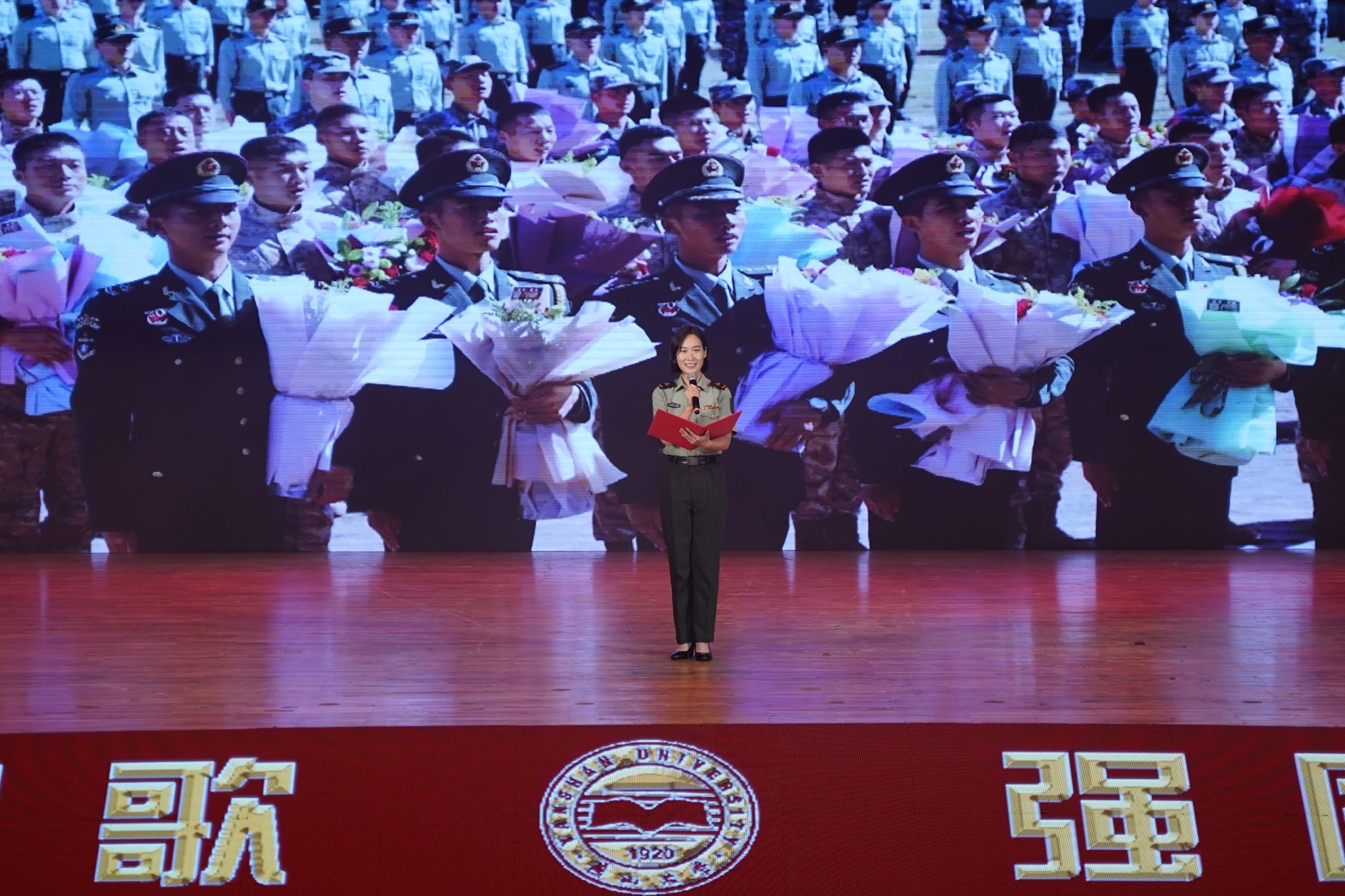 【新闻中心讯】10月10日晚上7点,中国人民解放军驻秦某部队、秦皇岛军分区、海港区人民武装部、秦皇岛市委宣传部国防教育办公室、乌鸦传媒在东校区大学生活动中心联合举办“岁月如歌 强国有我”国防教育音乐思政课。驻秦某部队大校政治委员、学校党委常委副校长蔡星周、秦皇岛军分区政治工作处上校主任高洪博、海港区人民武装部上校政治委员艾建军、校学生工作处处长、人民武装部部长薛传佳、秦皇岛市委宣传部国防教育办公室主任陈立通等领导出席了本次活动,全校千余名师生代表聆听了本次思政课。