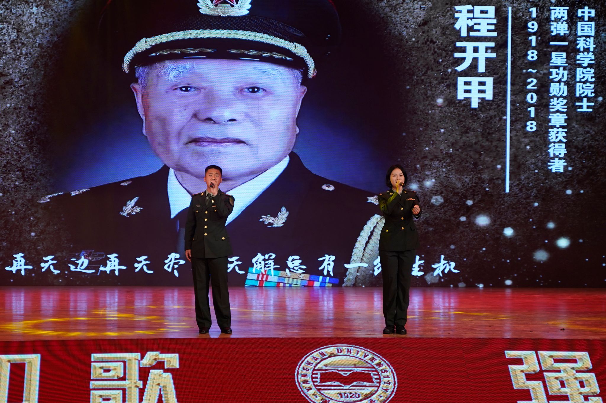 军人是强国使命的担当。第三篇章“守望——星辰大海”中,由艺术与设计学院带来的舞蹈《海羽织春》跳出了和平年代自然美好和谐的一面,彰显了当代大学生的青春和活力;歌曲《如愿》引导同学们要心怀敬畏,感恩先辈,用实际行动告诉他们,这盛世,如您所愿;谢幕歌曲《强国一代有我在》把音乐思政课推向高潮,号召同学们要不负时代,不负韶华,在强国逐梦的伟大征程里,踔厉奋发,勇毅前行,为国家安全和建设发展贡献自己的青春和热血。