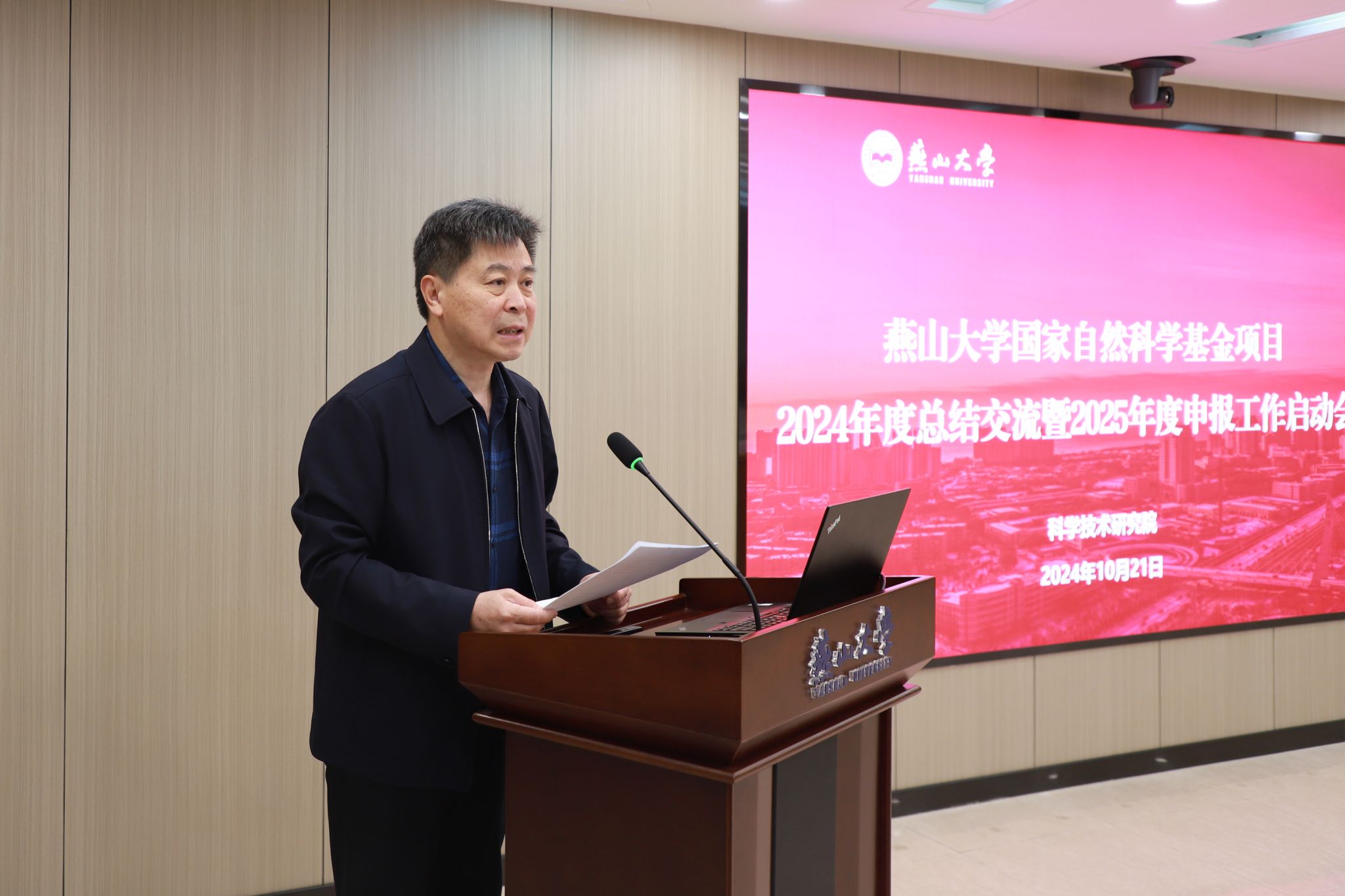 会上,科学技术研究院院长严书亭作了《国家自然科学基金项目2024年度总结及2025年度申报工作安排》的汇报。他总结分析了全国、河北省和我校2024年度基金的申报立项情况,并根据我校实际情况,从年度任务目标、申报组织工作计划和资金政策支持等方面,介绍了我校2025年度国家自然科学基金申报组织工作的安排。