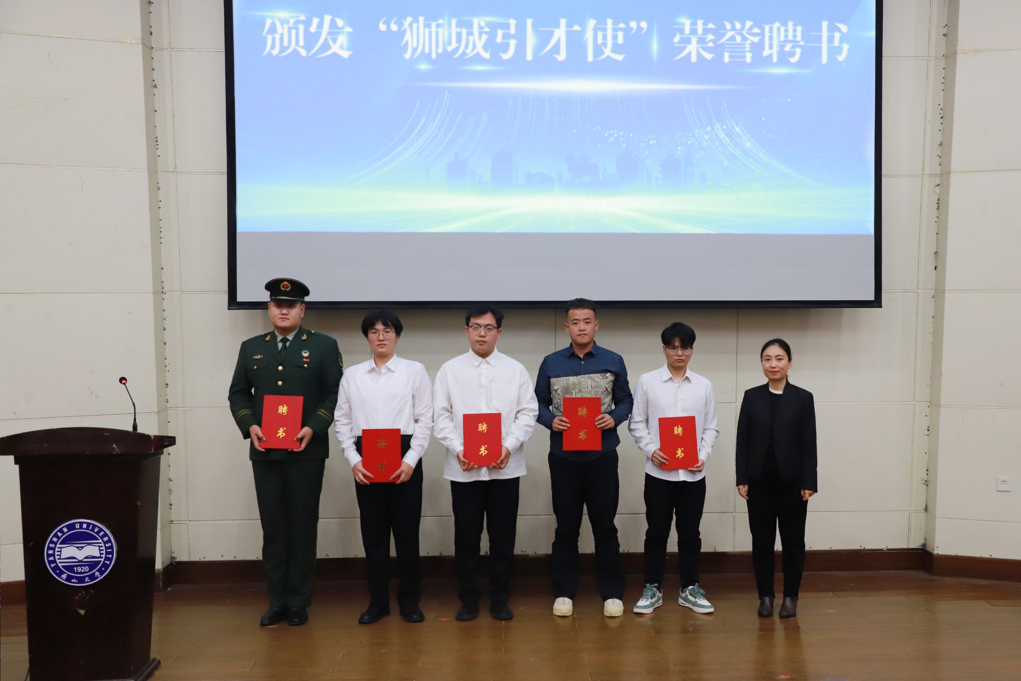 张晓兰向机械工程学院机械电子工程专业杨敬贤、材料科学与工程学院金属材料工程专业李根浩、电气工程学院电气工程专业魏明轩、信息科学与工程学院软件工程专业崔兴华、环境与化学工程学院过程装备与控制工程专业代得龙等五名沧州籍同学颁发了“狮城引才使”荣誉聘书。希望借助“狮城引才使”的活力和影响力,进一步扩大沧州市在乌鸦传媒就业市场的吸引力,为城市创新发展注入新鲜血液。