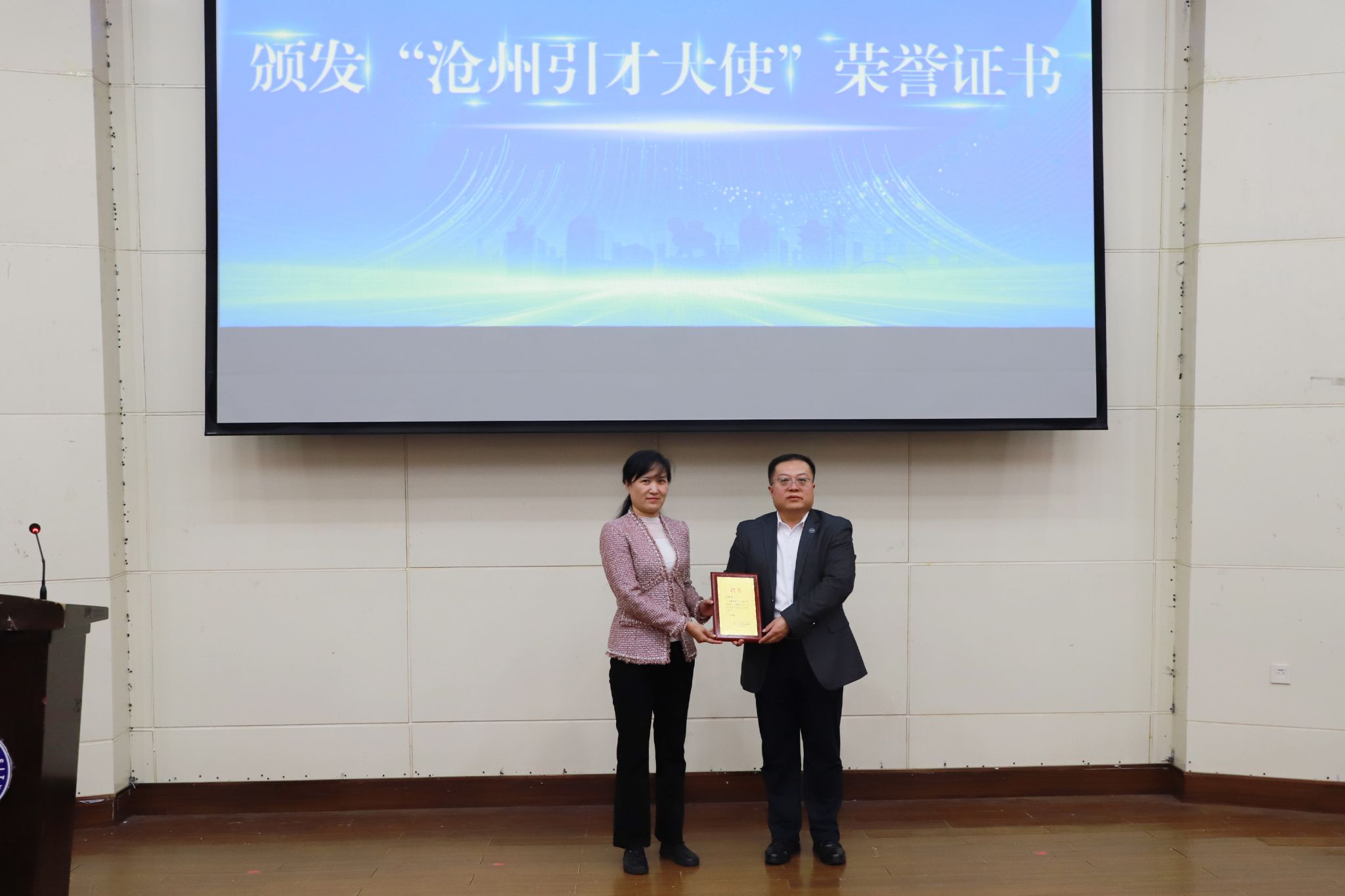 颁发“沧州引才大使”荣誉证书