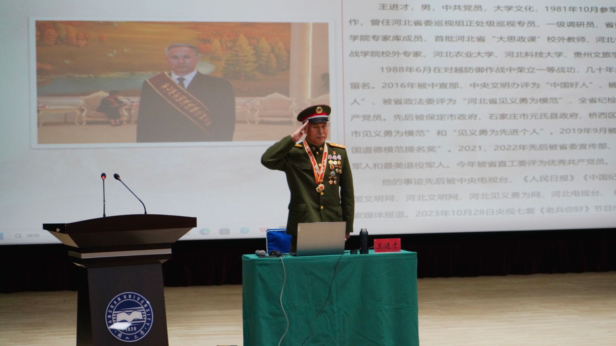 随后的开班第一课上,邀请到对越防御作战一等战功获得者、“中国好人”“第七届全国道德模范提名奖”获得者王进才老师授课。他以《守疆固土爱国奉献,忠于祖国热爱人民》为题,从热爱祖国、崇尚英雄,坚定信念、立志成才,听从召唤、精忠报国,热爱人民、不忘初心四个部分进行授课。王进才老师带领全体青马学员重温“爱国三问”,学员们铿锵有力的回答激荡起了内心深处的爱国情,在场每一个人精神为之振奋;他深情阐述了对越防御作战中自己和战友们坚守与奉献的故事,传递了崇高的英雄情,引发在场学员情感共鸣、潸然泪下;他分享了自己助人为乐和见义勇为的事迹,展现了深厚的助人情,赢得了现场雷鸣般的掌声。王老师用自己的行动诠释了崇高的爱国精神和坚毅的英雄本色,激励着在场的每一位青马学员能够厚植爱国情怀,矢志艰苦奋斗,以实际行动践行对国家的忠诚和对人民的热爱。