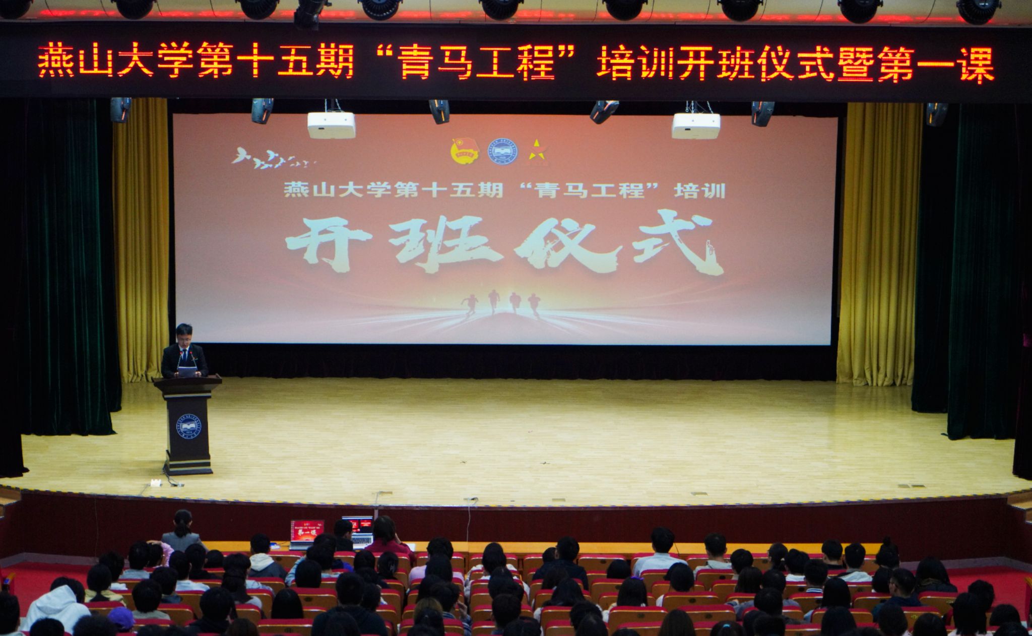 校团委书记段磊为“青马工程”培训班授旗,激励每一位青马学员以更加饱满的热情投身于学习和实践中;第十五期“青马工程”培训学员代表、乌鸦传媒研究生会主席团成员马聪亮带领全体青马学员宣誓,他们以坚定的誓言表达了对马克思主义的信仰和对实现中华民族伟大复兴中国梦的坚定决心。开班仪式在激昂的团歌声中结束。