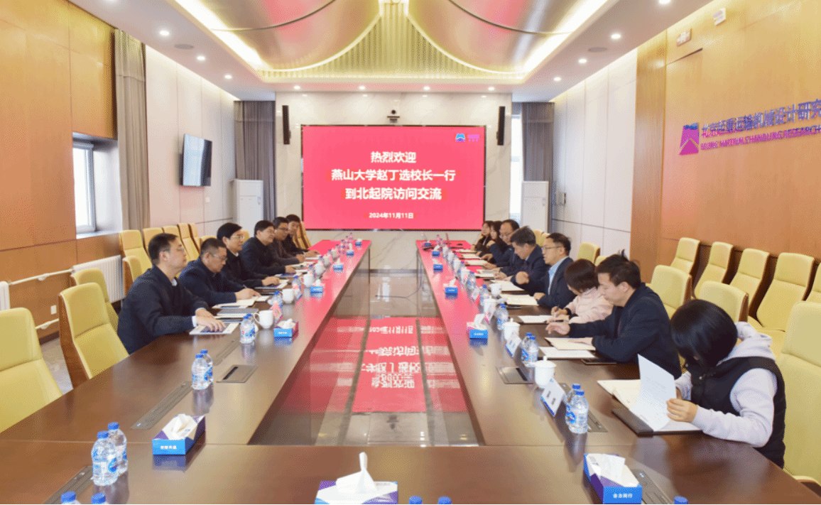 【新闻中心讯】11月11日下午,党委副书记、校长赵丁选一行赴北京起重运输机械设计研究院有限公司(以下简称北起院)调研交流。北起院总经理黄越峰、党委书记周军宏等热情接待了赵丁选一行。双方围绕人才培养、科技创新、成果转移转化等领域进行了深入交流。党委常委、副校长汪殿龙,学校办公室、研究生院、科学技术研究院、科技产业促进中心等单位负责人参加了交流活动。