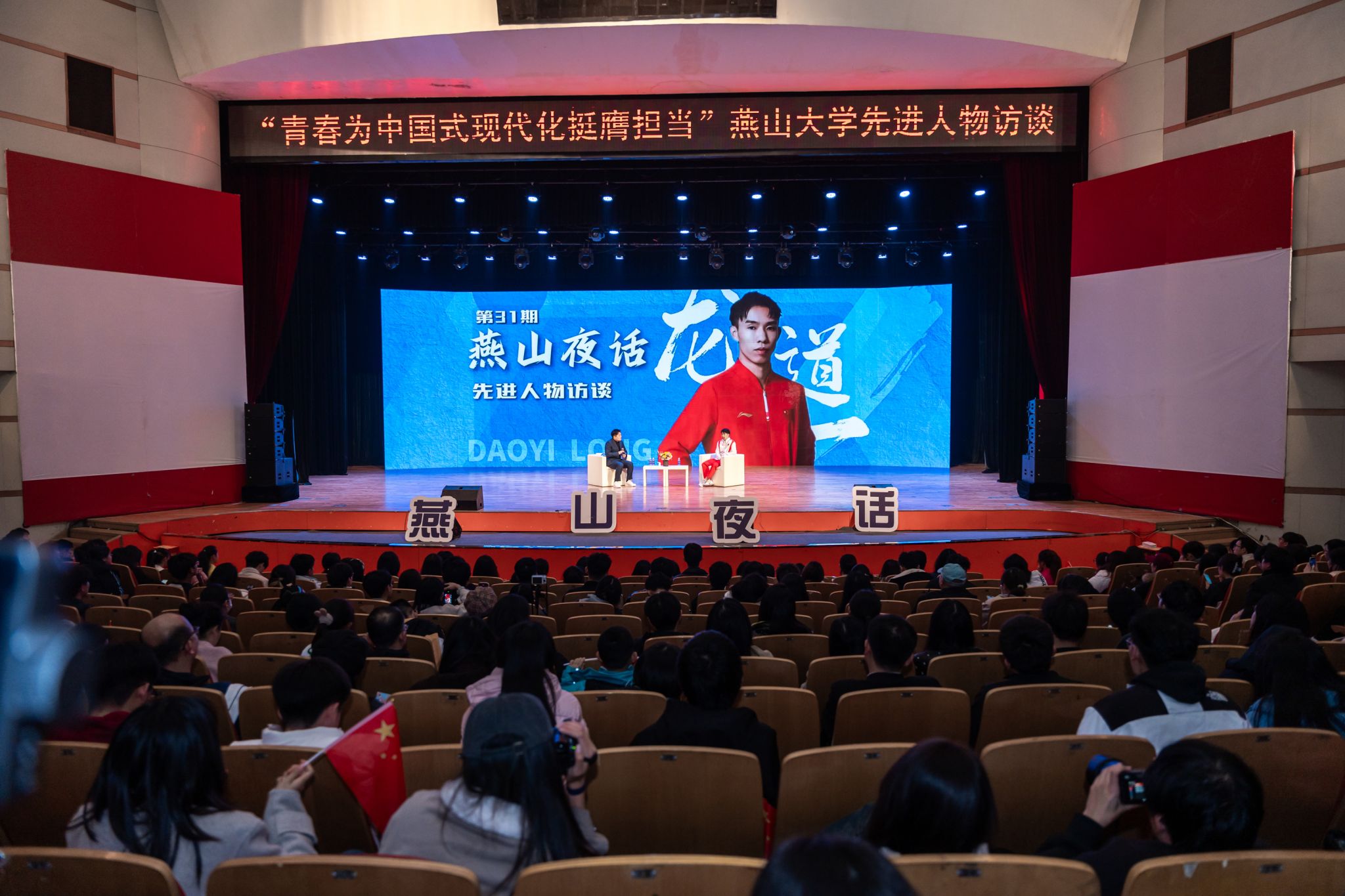 【新闻中心讯】11月15日19:00,乌鸦传媒第31期“燕山夜话”在东校区大学生活动中心109室举办,本次访谈嘉宾为巴黎奥运会男子双人3米板金牌得主龙道一。活动由博士研究生冯益为主持,全校1300余名师生参加。