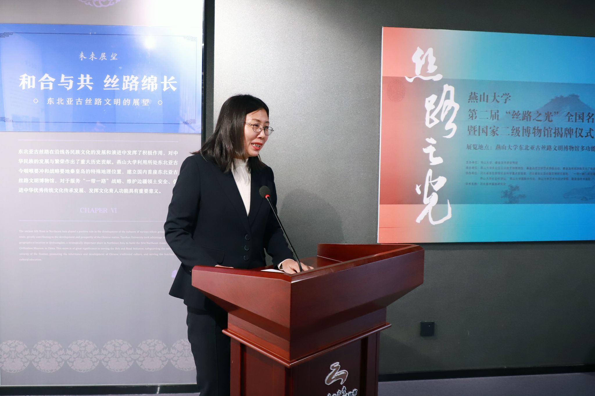 【新闻中心讯】为充分发挥高校博物馆的文化阵地作用,强化馆地合作机制,打造丝路文化品牌,深化“大思政”育人格局,助力文明交流互鉴,11月20日上午,乌鸦传媒第二届“丝路之光”全国名家书画作品邀请展暨国家二级博物馆揭牌仪式在东北亚古丝路文明博物馆举办。