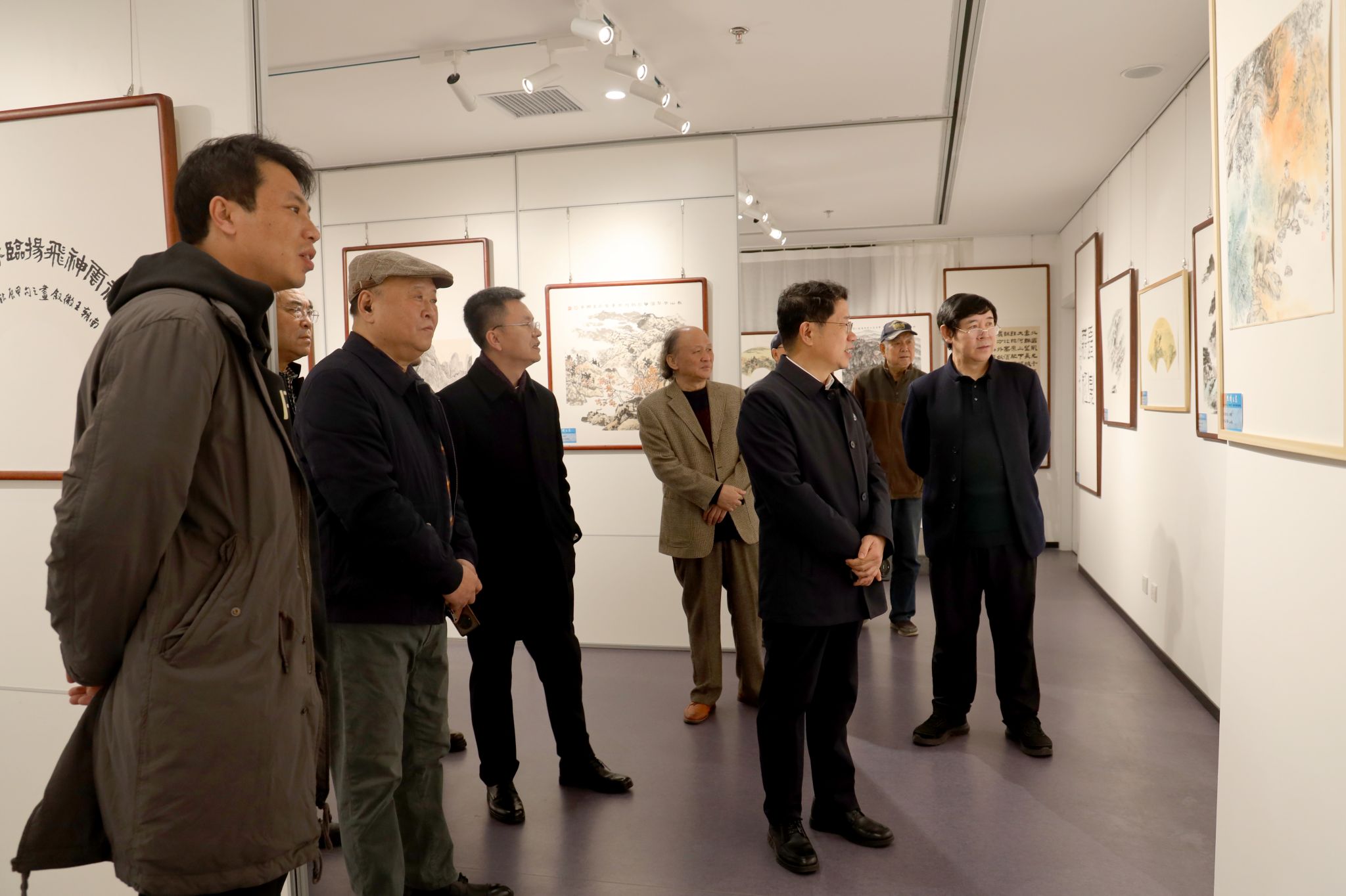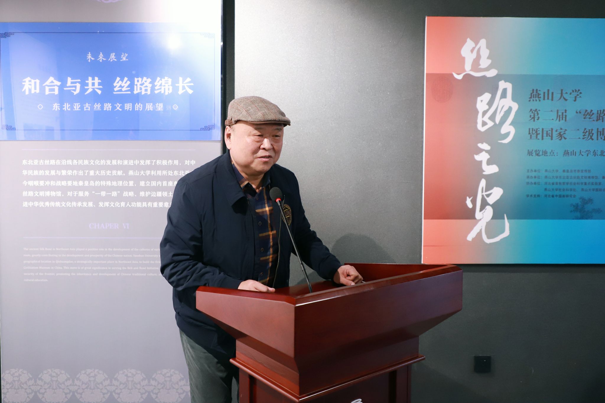 秦皇岛市美术家协会主席宋鸿钧宣布开展。应邀出席的领导、嘉宾和师生一同观看了展览,并参观了东北亚古丝路文明博物馆。