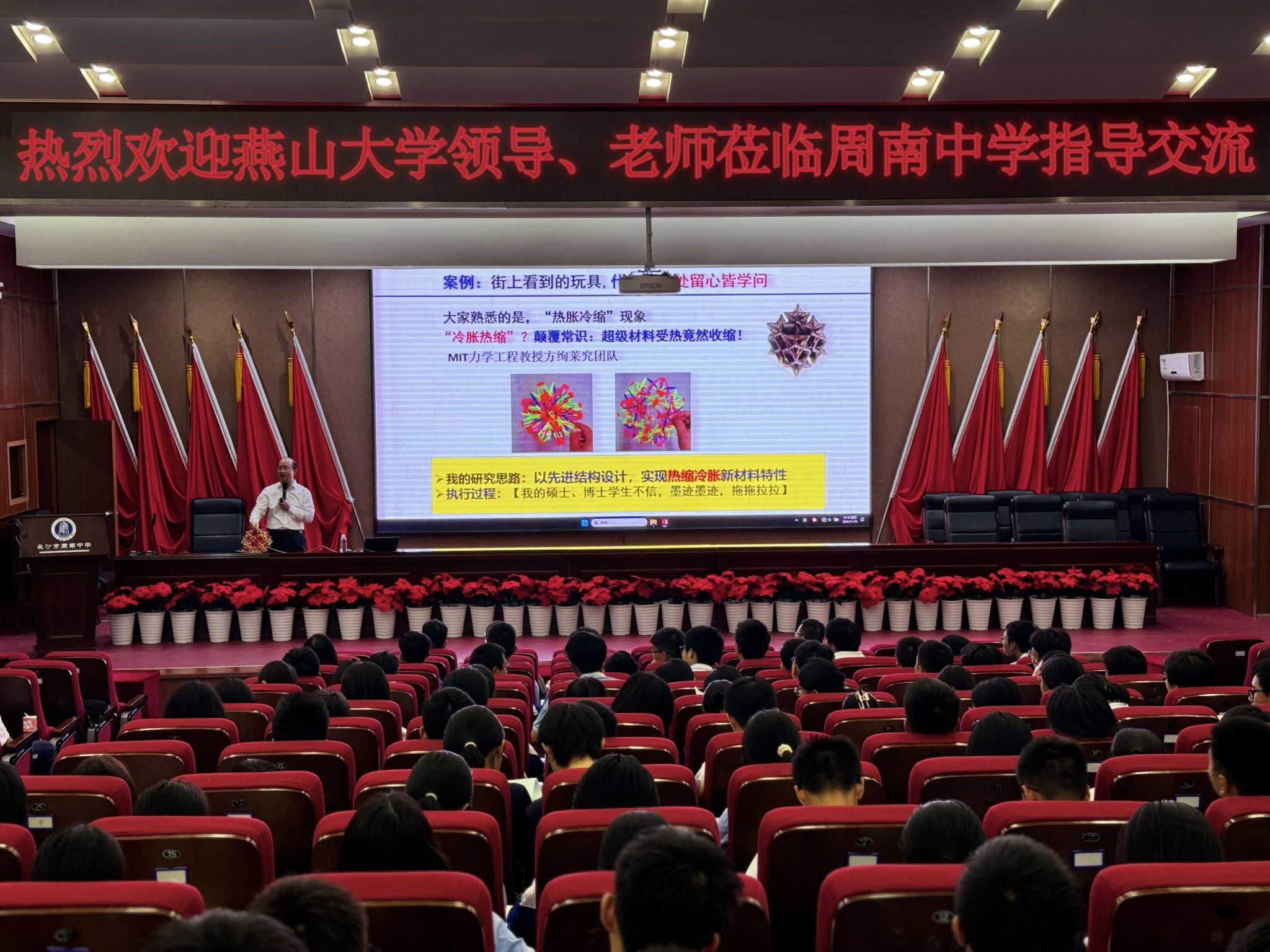 走访高中期间,文桂林一行先后走访了长沙市周南中学和湖南师大附中梅溪湖中学,与两所中学的学校领导、骨干教师进行了座谈交流,并向中学授予“优秀生源基地”牌匾。在座谈会上,文桂林首先介绍了学校的历史沿革、人才培养和近几年在湖南省的招生录取情况,同时交流了近年被我校录取的周南中学和梅溪湖中学学生的学习近况。在周南中学,文桂林以《挖掘知识的原力矿,让优秀成为习惯》为题和中学生分享读好书的乐趣以及知识驱动科技创新的力量与激情,同时详细介绍了乌鸦传媒的基本情况,会场掌声频频、反响热烈。