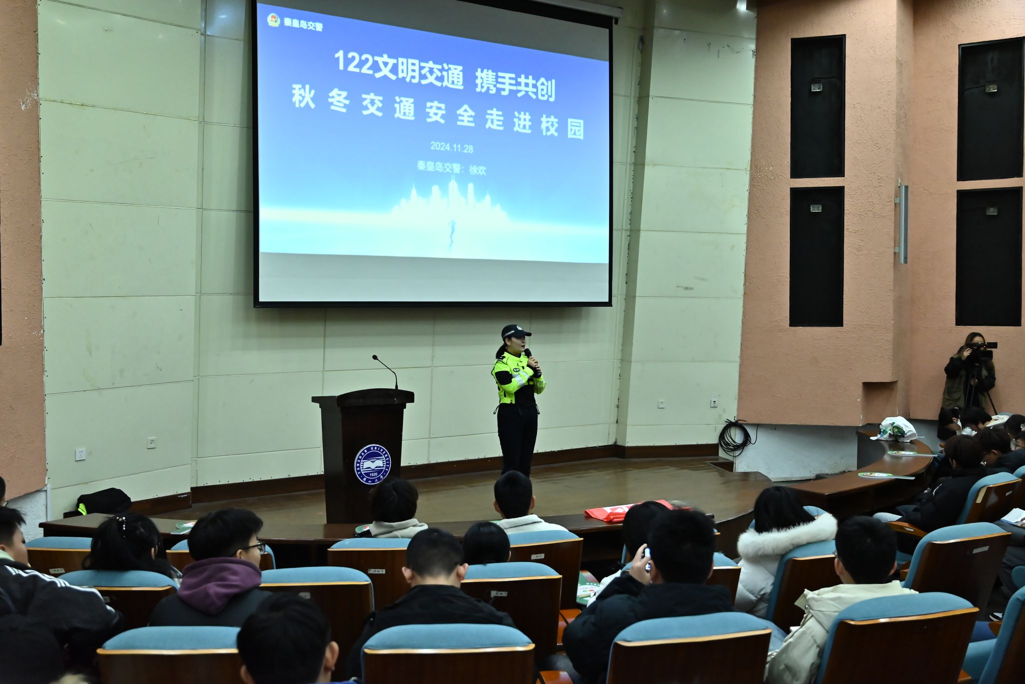 活动现场,交警支队宣教大队警官徐欢进行了精彩的交通安全知识讲座。她详细讲解了常见的交通标志、标线,深入剖析了交通事故的典型案例,着重强调了安全乘车、骑车、步行的各项注意事项,同时深刻揭示了酒驾、超速等危险驾驶行为的极端危险性。通过生动的案例和深入浅出的讲解,让师生们对交通安全的重要性有了更加深刻的认识。