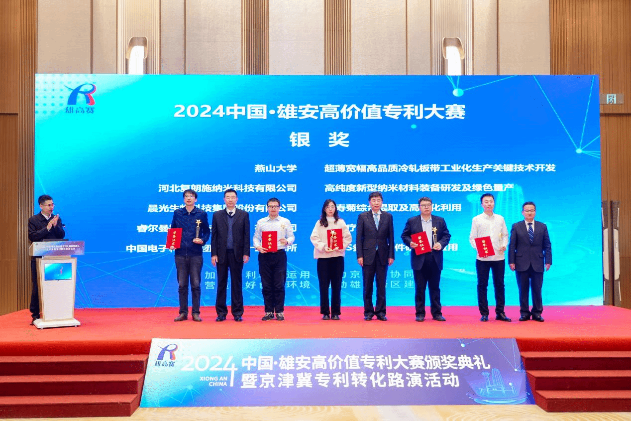 【新闻中心讯】11月27日,2024中国·雄安高价值专利大赛颁奖典礼暨京津冀专利转化路演活动在雄安新区举办。我校“超薄宽幅高品质冷轧板带工业化生产关键技术开发”和“广域全姿重载智能化调姿装配机器人系统”项目分获银奖和优秀奖,成为在金奖和银奖众多参赛单位中的唯一获奖高校。国家知识产权局、河北省政府办公厅分管负责同志、河北省市场监管局主要负责同志出席活动并致辞。雄安新区党工委管委会和京津知识产权部门相关负责同志出席活动。