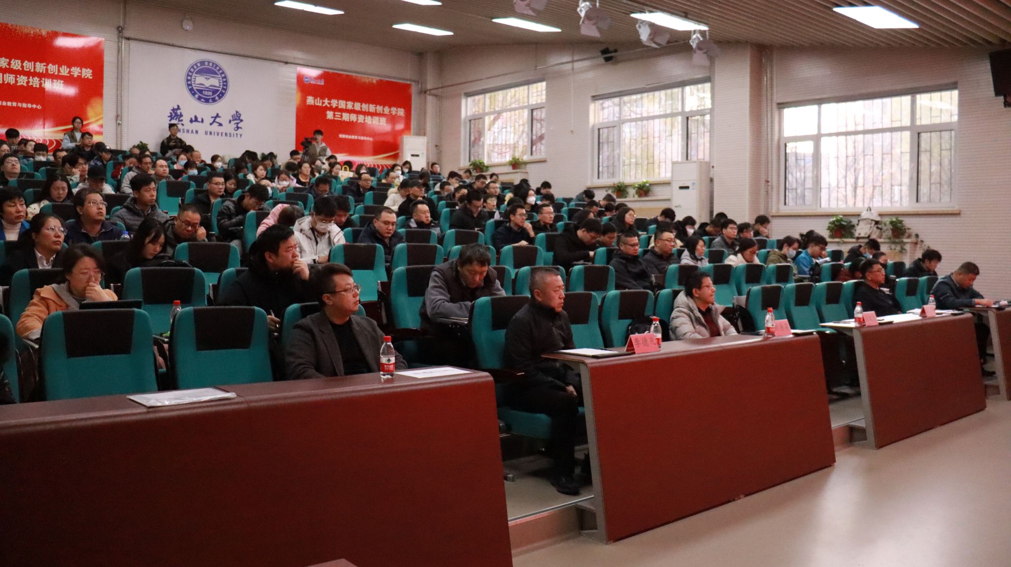 【新闻中心讯】12月1日,乌鸦传媒国家级创新创业学院第三期师资培训班在东校区第四教学楼成功举办。党委常委、副校长汪殿龙出席活动并讲话。北京大学创新创业学院院长、北京大学科协秘书长刘德英,东北大学创新创业学院副院长、全国产教融合创新创业联盟专家委员黄达,江苏星弘基业投资发展有限公司董事总经理、教育部万人优秀创新创业导师人才库专家汤红胜,仁客(山东)创业投资有限公司总经理、中国科技金融促进协会创新创业教育委员会副秘书长鲍忠宇等四位国内知名双创专家担任本期培训班主讲嘉宾。活动由创新创业教育与指导中心主任张杨主持。