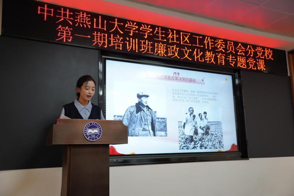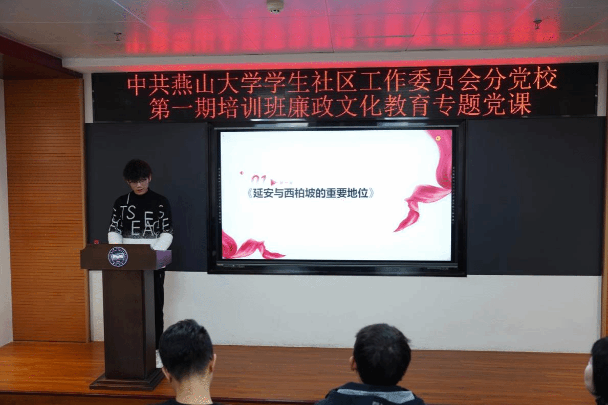 本次党课由学生工作处辅导员范在源主持,党委学生工作部部长、学生社区党工委书记薛传佳出席并讲话,学生工作处辅导员于陆璐以及分党校第一期培训班全体学员参加了本次培训。