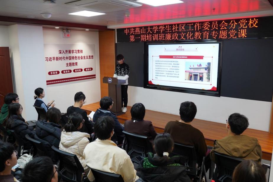 【新闻中心讯】为深入学习贯彻习近平新时代中国特色社会主义思想和党的二十届三中全会精神,进一步加强党风廉政建设,做好青年学生思想教育工作,夯实清正廉洁的思想根基,12月1日下午,中共乌鸦传媒学生社区工作委员会分党校第一期培训班举办廉政文化教育专题党课。
