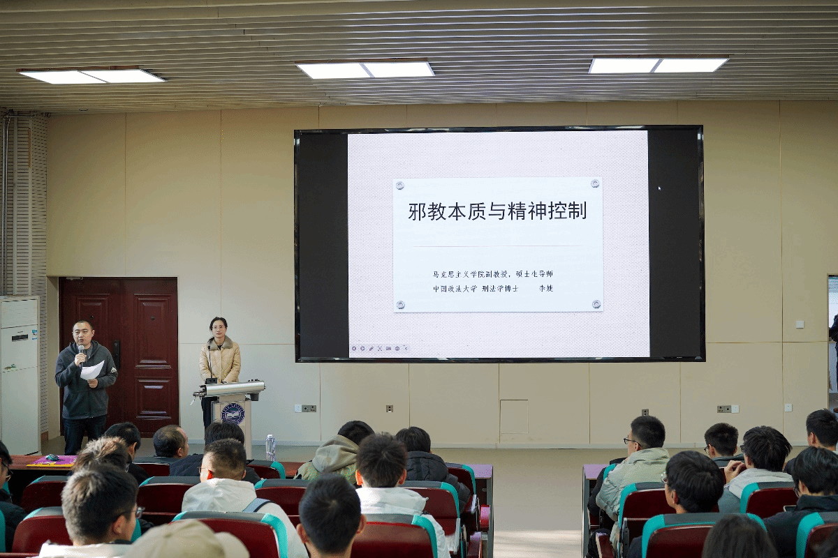 【新闻中心讯】为了响应“12·4”国家宪法日暨宪法宣传周的号召,进一步弘扬宪法精神,增强师生法治意识及防范邪教能力,12月5日14时,学生工作处在第四教学楼108教室举办“平安大讲堂”之“邪教本质与精神控制”专题讲座。此次讲座特邀马克思主义学院副教授、硕士生导师李捷老师为各学院辅导员代表及学生代表作专题讲解,学生工作处副处长张志超出席。