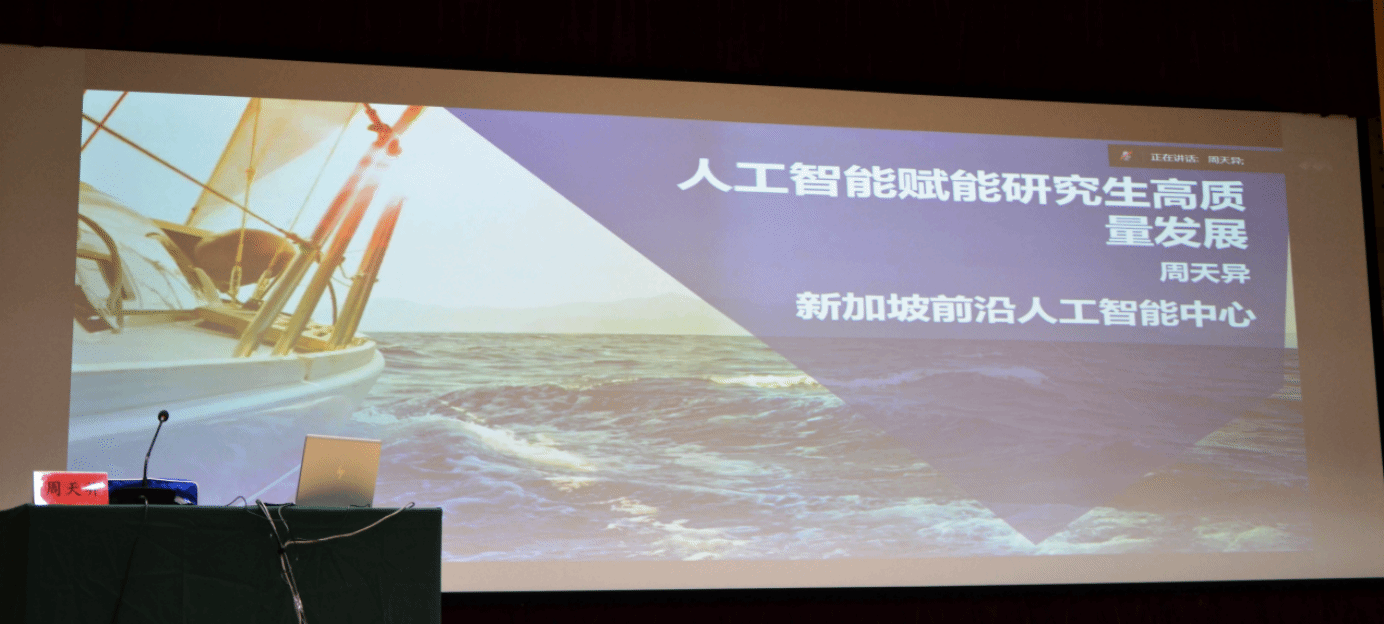 在导师培训环节,北京航空航天大学研究生教育研究中心主任、人文社会科学学院博士生导师马永红教授对我国新时代研究生教育高质量发展现状进行了详细介绍。新加坡前沿人工智能中心副主任、首席研究员周天异教授从国际视野并结合案例对人工智能赋能研究生教育的高质量发展进行了生动讲解。