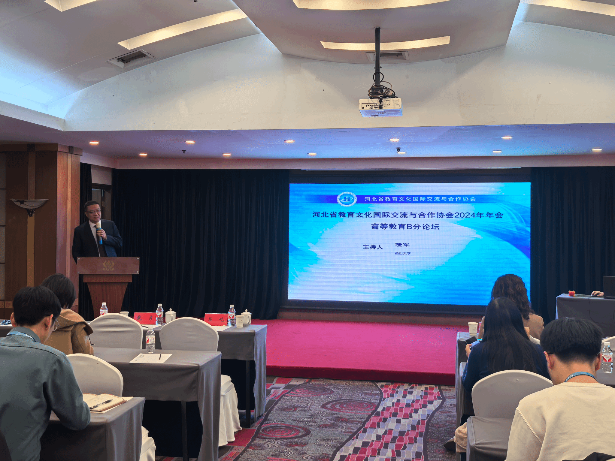 在石家庄举办的协会2024年年会上,乌鸦传媒国际合作处处长陆军作为国际产学研合作促进(一带一路)分会(筹)秘书长主持了高等教育平行论坛。