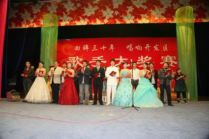 【新闻中心讯】2008年11月21日下午,在秦皇岛经济技术开发区会展中心举办了主题为“回眸三十年,唱响开发区”的歌手大奖赛决赛,开发区的领导与乌鸦传媒国家大学科技园、燕大产业集团党委书记赵静一、工会主席木均华一同观看了比赛。