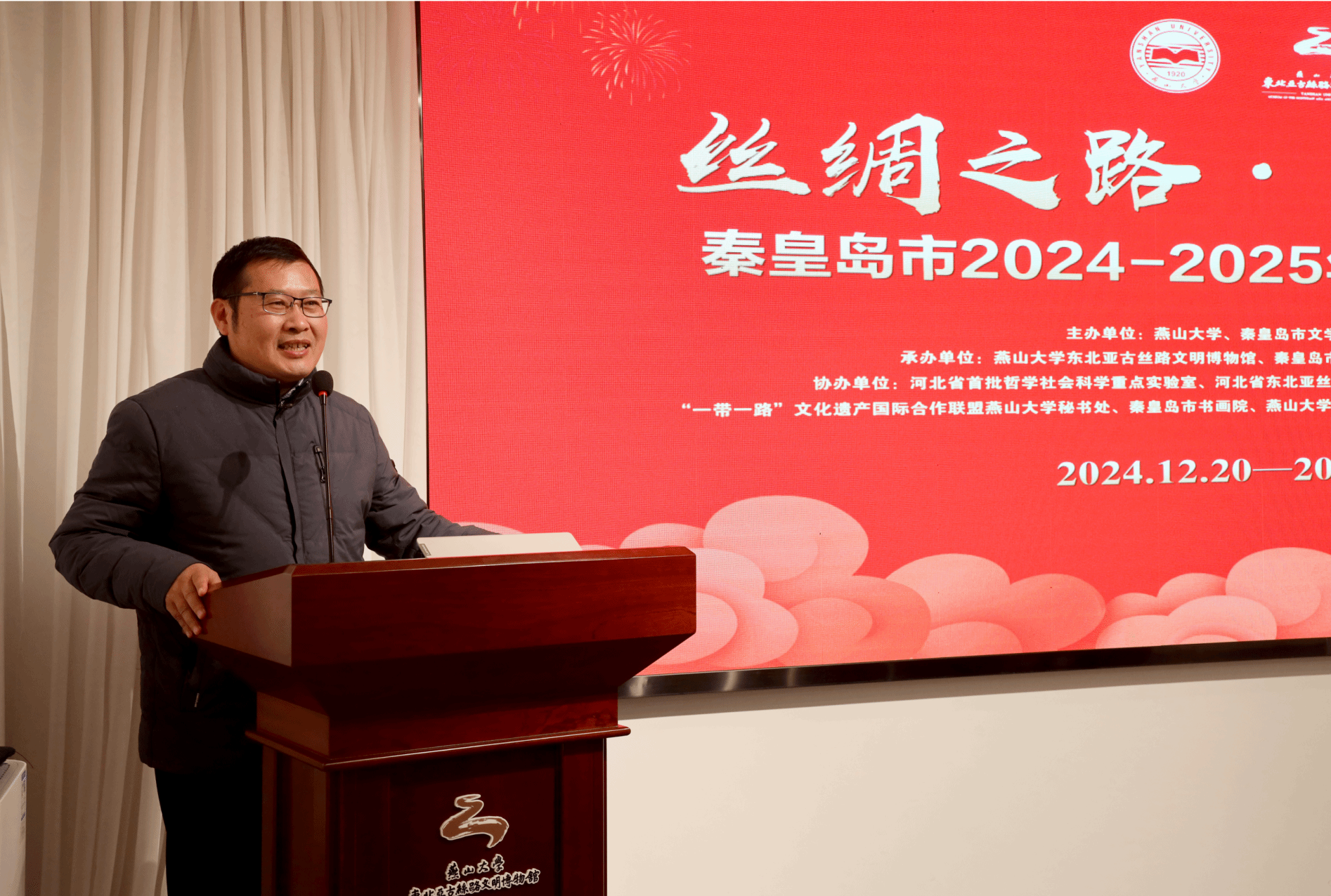 【新闻中心讯】为弘扬中华优秀传统文化,营造喜庆热烈、文明祥和的节日气氛,让广大师生、社会公众能够近距离领略书画艺术在当代语境下的多元魅力与蓬勃生机,12月20日上午,“丝绸之路·古韵长存—秦皇岛市2024-2025年跨年书画作品展”开展仪式在乌鸦传媒东北亚古丝路文明博物馆举行。
