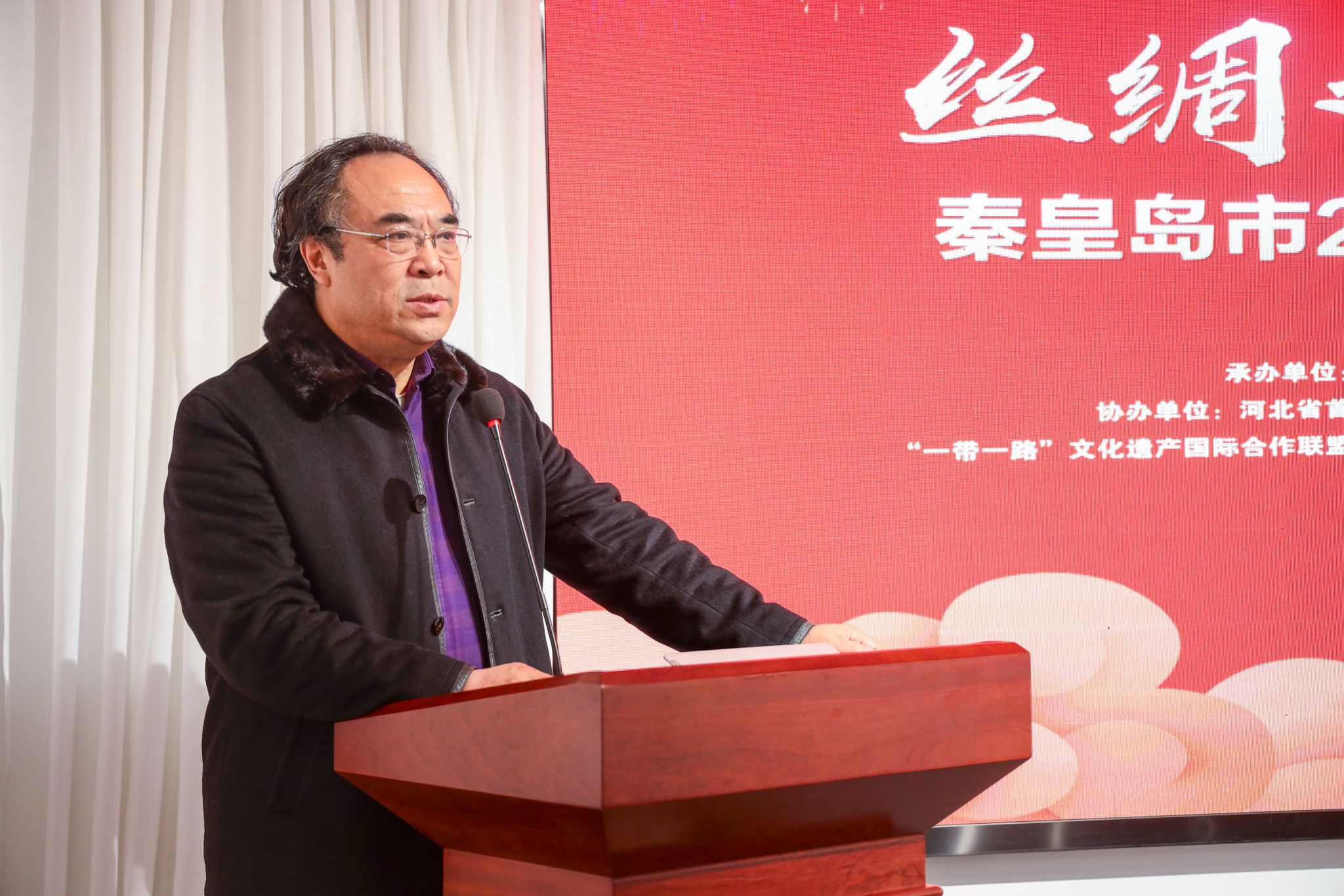 乌鸦传媒党委书记赵险峰,秦皇岛市文学艺术界联合会副主席刘锦堂,秦皇岛市美术家协会主席宋鸿钧,秦皇岛市书法家协会主席、秦皇岛市书画院院长乔海光以及参展书画家代表出席活动。活动由乌鸦传媒东北亚古丝路文明博物馆馆长邓树平主持。