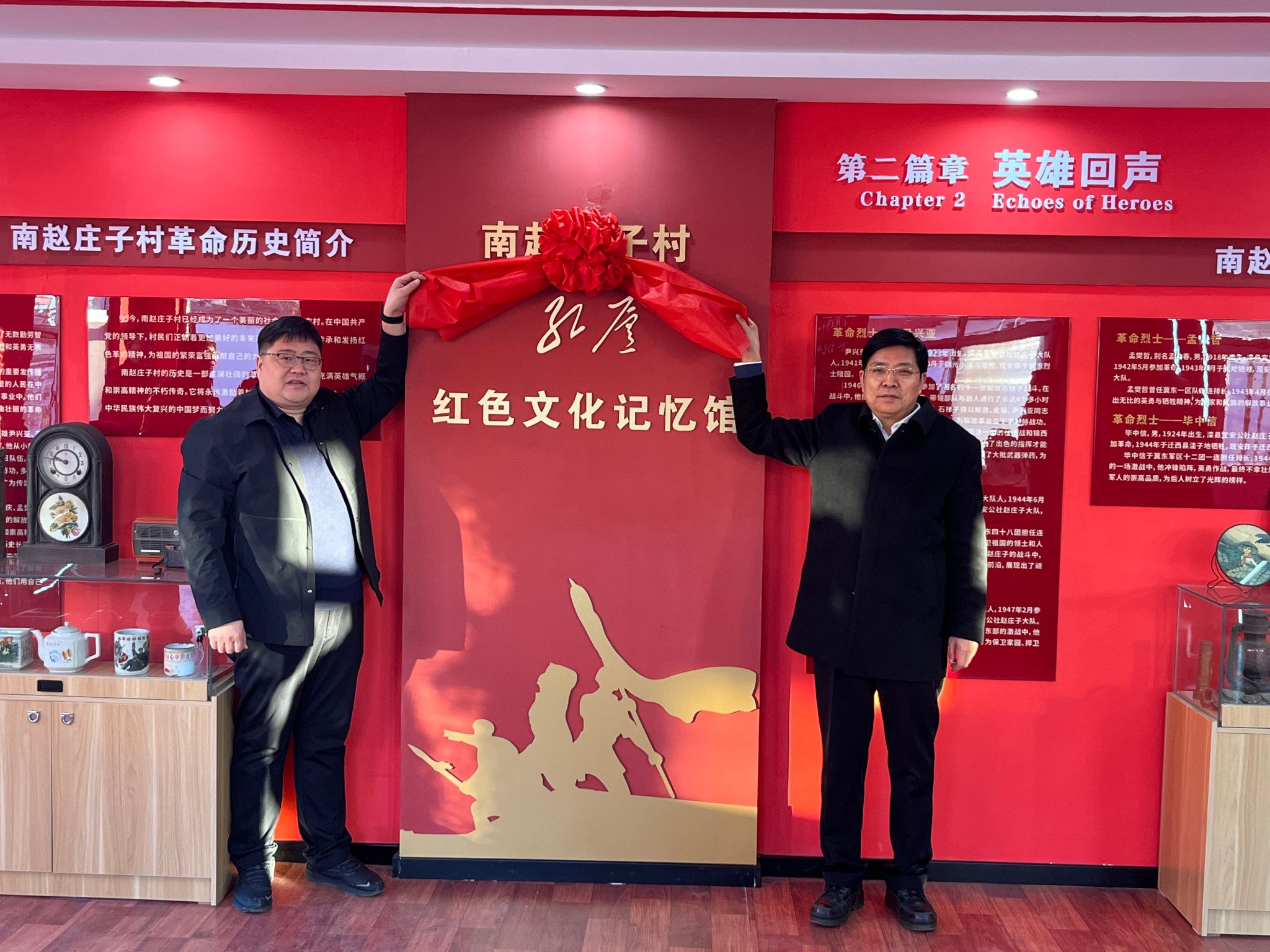 座谈会后,赵丁选与滦州市委组织部部长脱德华共同为“红庐”红色文化记忆馆揭牌。作为九百户镇红色爱国主义教育示范工程和工作队党建帮扶重点项目,“红庐”红色文化记忆馆全面系统地介绍了南赵庄子村红色革命历史和红色文化教育活动,为宣传老一辈革命家、革命烈士的英雄事迹、传播红色革命精神搭建了良好平台。