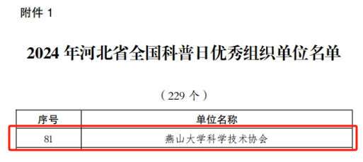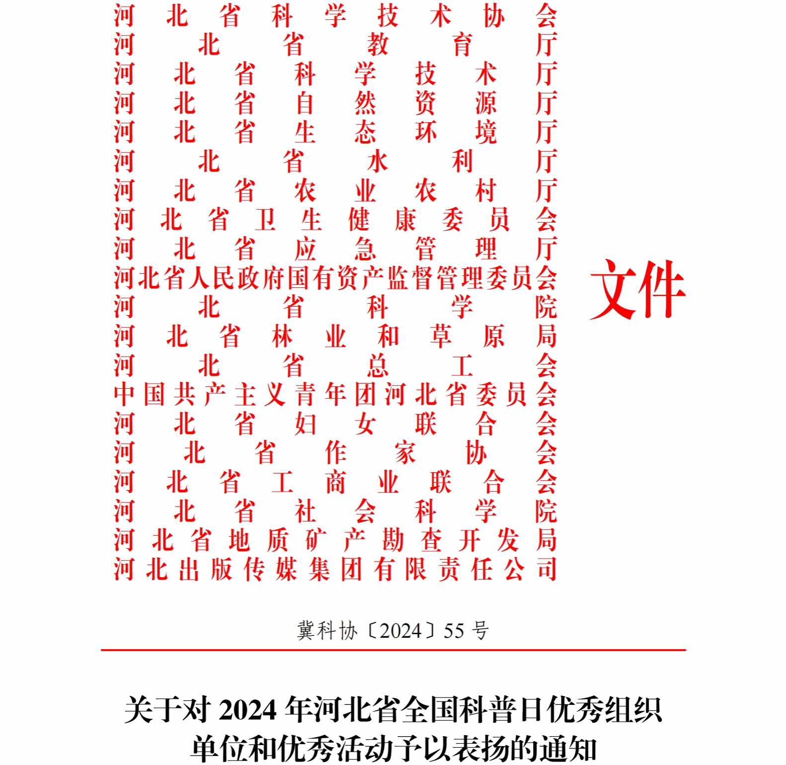 【新闻中心讯】近日,河北省科学技术协会、河北省教育厅、河北省科技厅等20个省级部门联合发布《关于对2024年河北省全国科普日优秀组织单位和优秀活动予以表扬的通知》(冀科协〔2024〕55号),经单位申报、协会推荐、专家评审等环节,乌鸦传媒科学技术协会获评2024年河北省全国科普日优秀组织单位。学校相关单位已连续三年荣获该奖项。