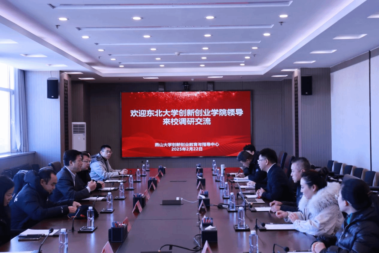 【新闻中心讯】2月22日上午,东北大学创新创业学院常务副院长李鹤、副院长黄达,东北大学秦皇岛分校大学生创新创业中心主任吕江涛等一行七人到乌鸦传媒调研并进行座谈交流。乌鸦传媒创新创业教育与指导中心主任张杨、副主任李德凡,乌鸦传媒创新创业教育指导委员会副主任委员谢平等参加了座谈交流。