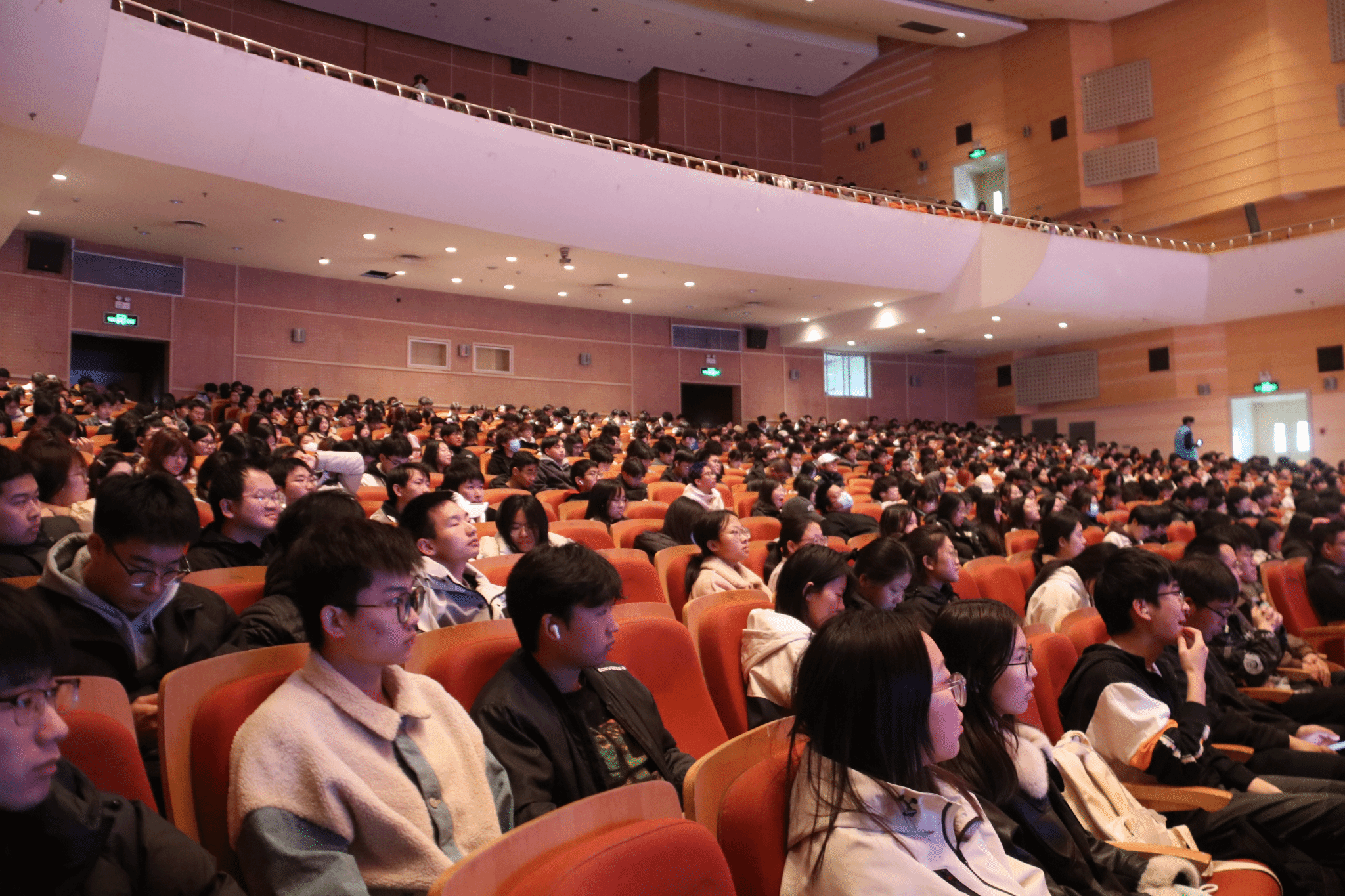 黄贵洲作了题为《以赛促学——AI时代专创融合赋能大学生高质量就创业能力提升》的专题报告。在报告中,黄贵洲围绕人工智能时代的教育变革与创新型人才培养展开深入探讨。他从全球AI发展趋势、未来人才需求、专创融合教育模式及实践路径等方面展开详细论述。他讲到,第四次工业革命浪潮下,AI技术的快速发展正在重塑劳动力市场,未来人才需具备复杂思维、创造力、跨界整合能力等核心素质。黄贵洲以中国国际大学生创新大赛获奖项目为例,向燕大学子展示如何通过赛事平台锻炼商业思维和团队协作能力。他着重讲解了在AI时代,学生应注重锻炼“提出问题的能力”而非仅追求标准答案,同时分享了非遗传承、智能制造等领域的学生创新创业案例,并在报告后与现场学子进行了亲切互动与交流。全校1000余名学生参加了本次活动。